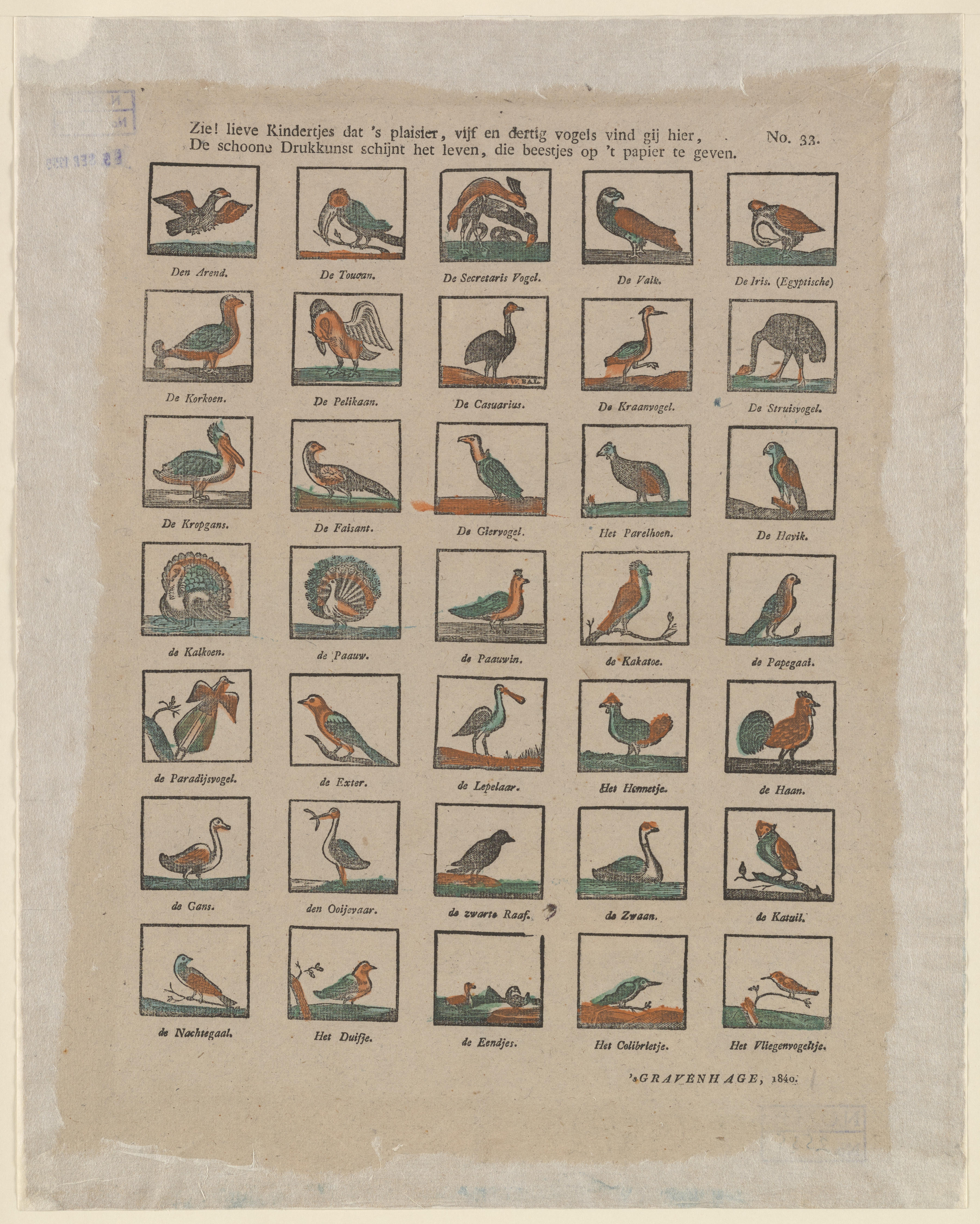 Komt hier nu Kinders fyn en lees dees Vogels al/ Gy ...