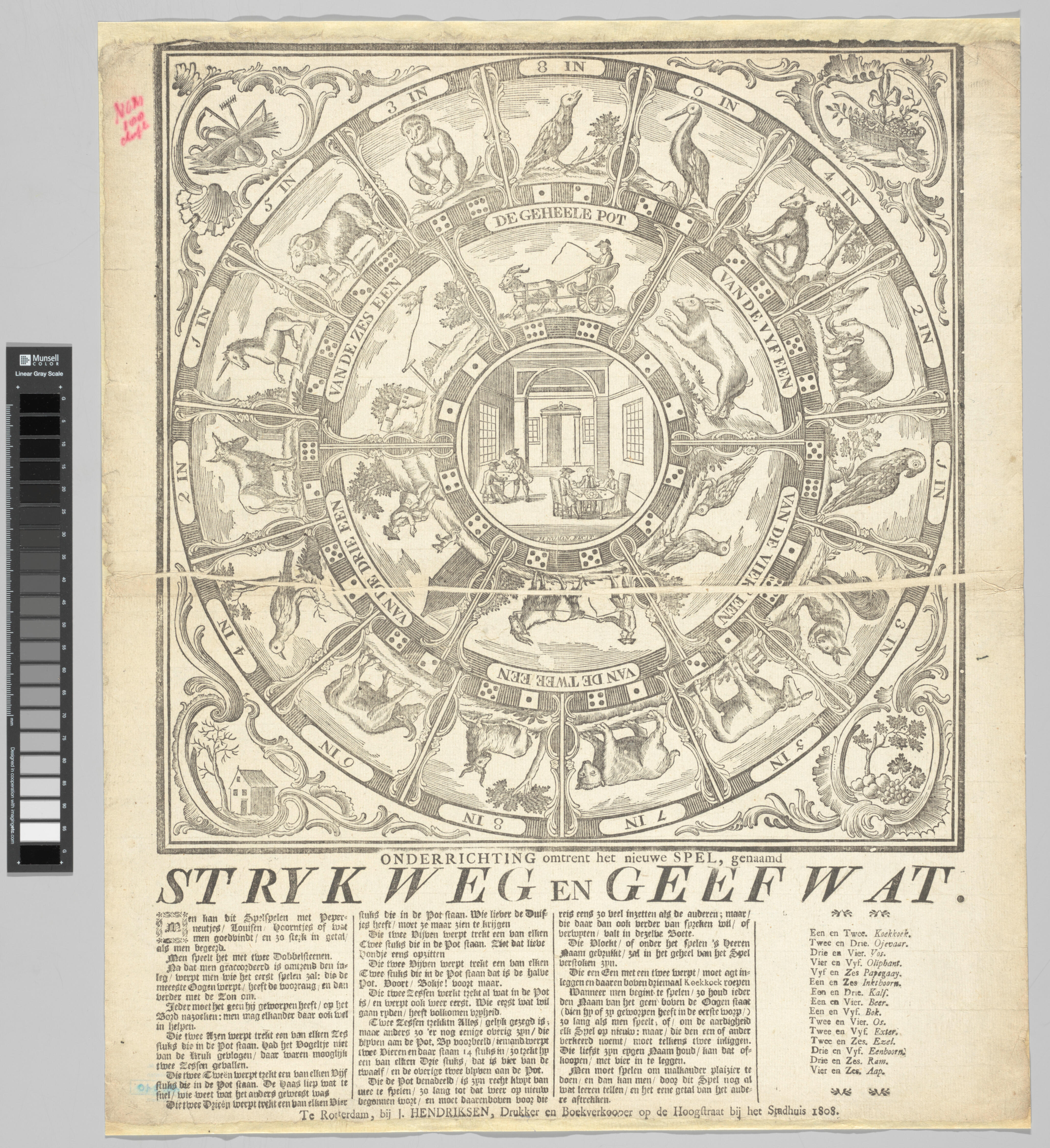 Bordspel 'Stryk Weg en Geef Wat', Rotterdam, 1797–1826