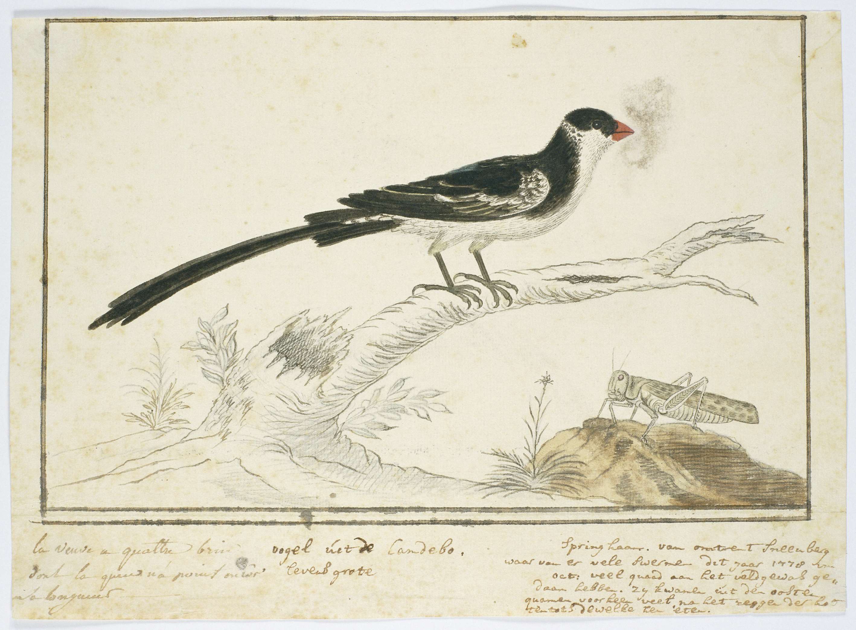 Vidua macroura (Pin-tailed whydah) and locust