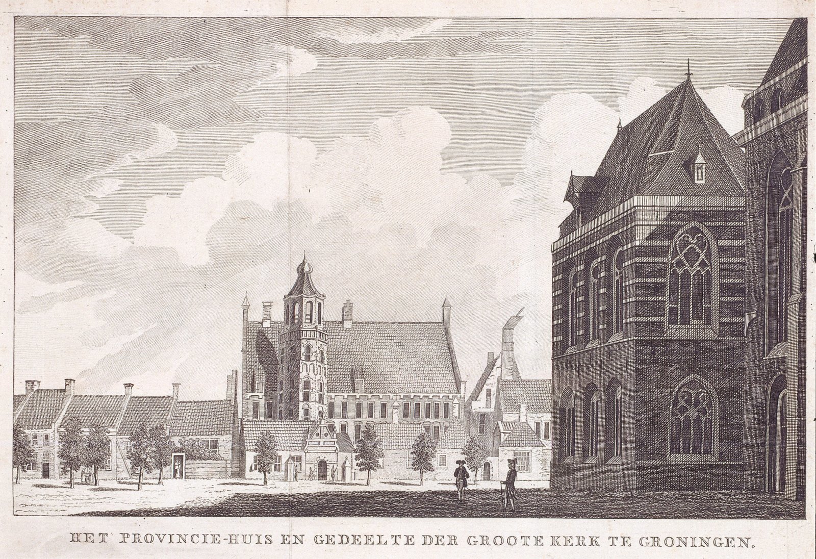 Het Provincie-huis en gedeelte der Groote Kerk te Gr...