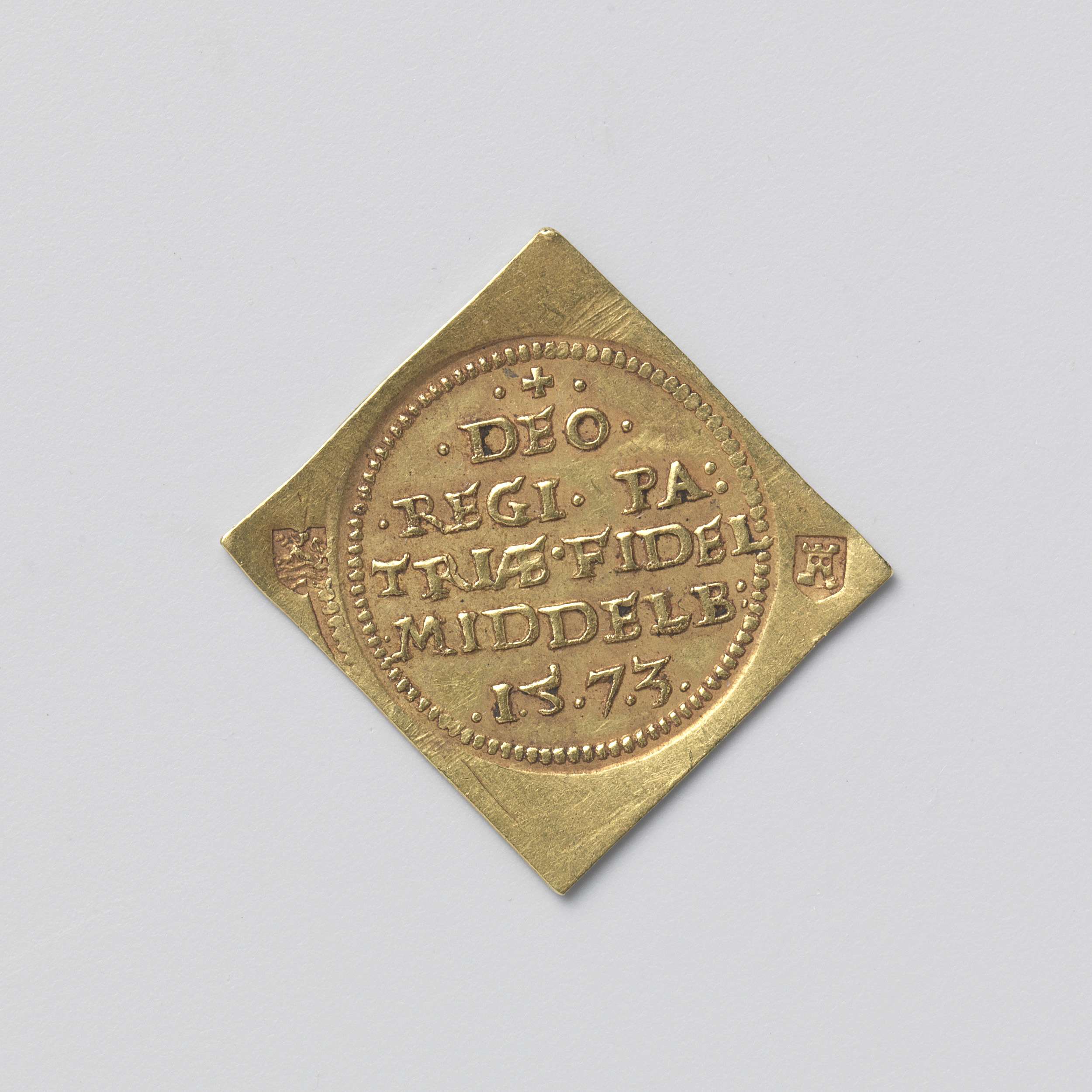 kwart gulden; verguld papieren noodmunt uit Leiden, ...