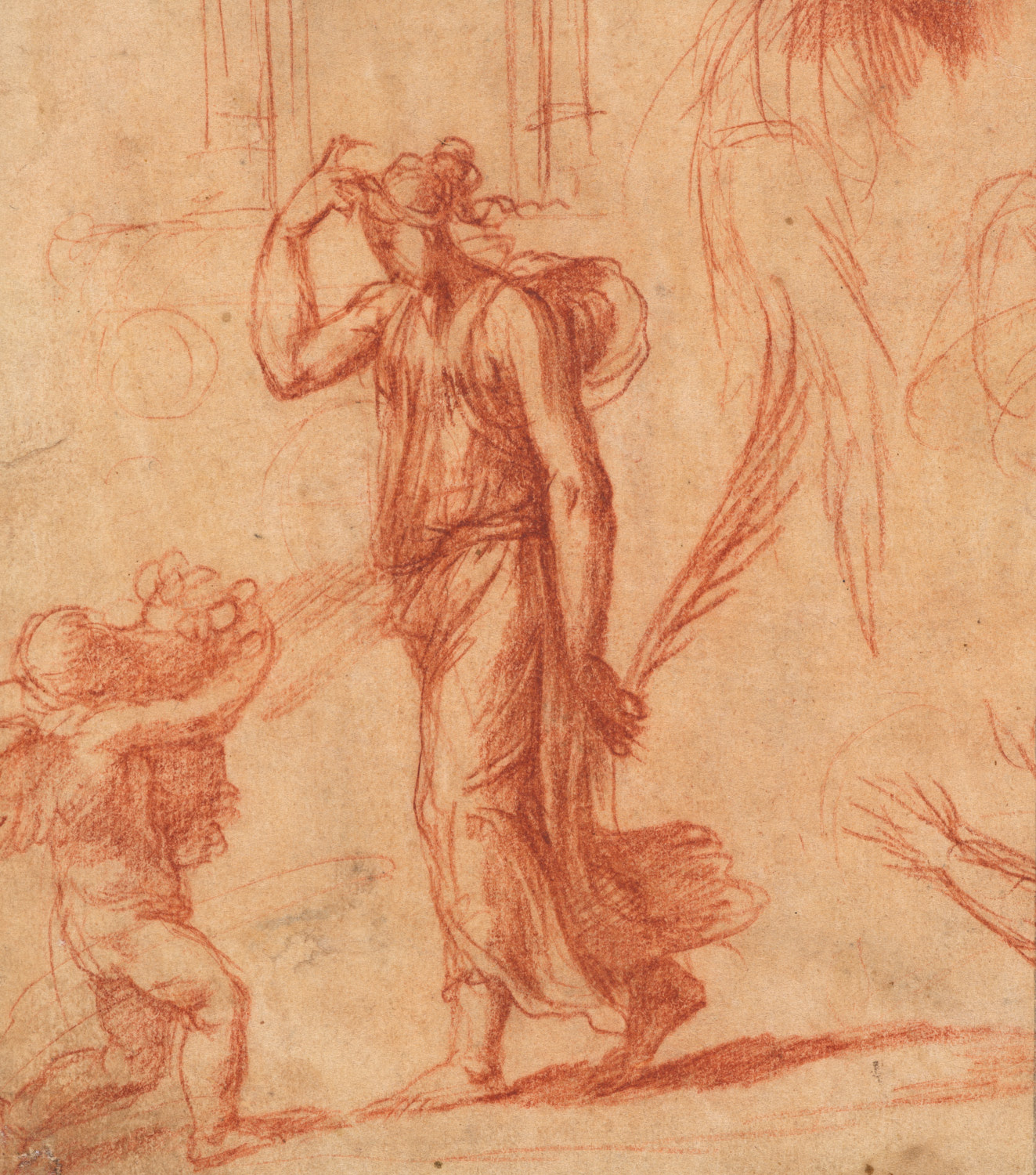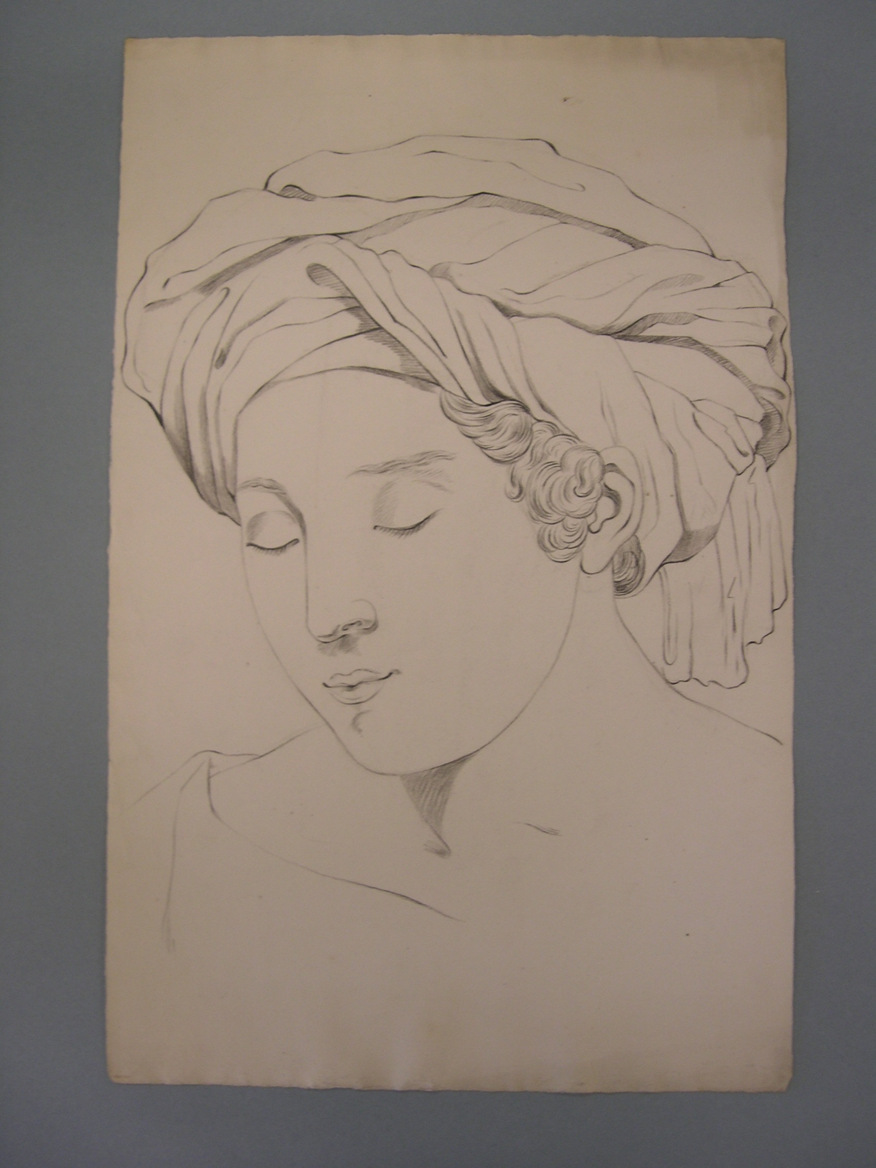 Zittend weesmeisje achter een tafel (recto). Schets ...