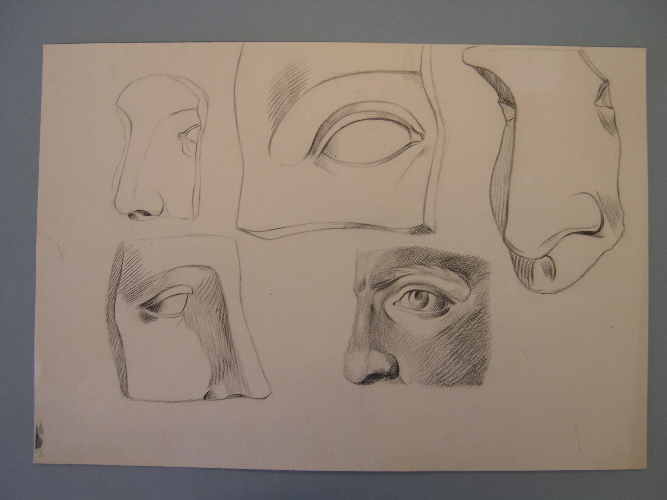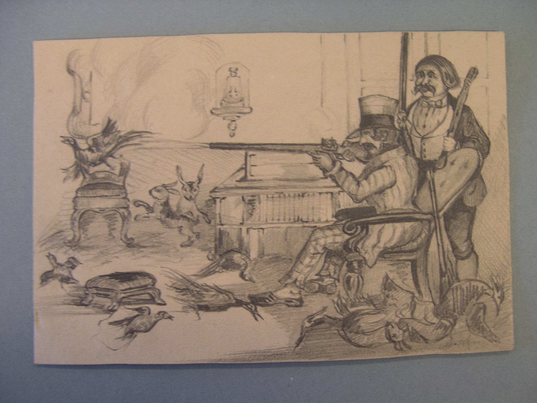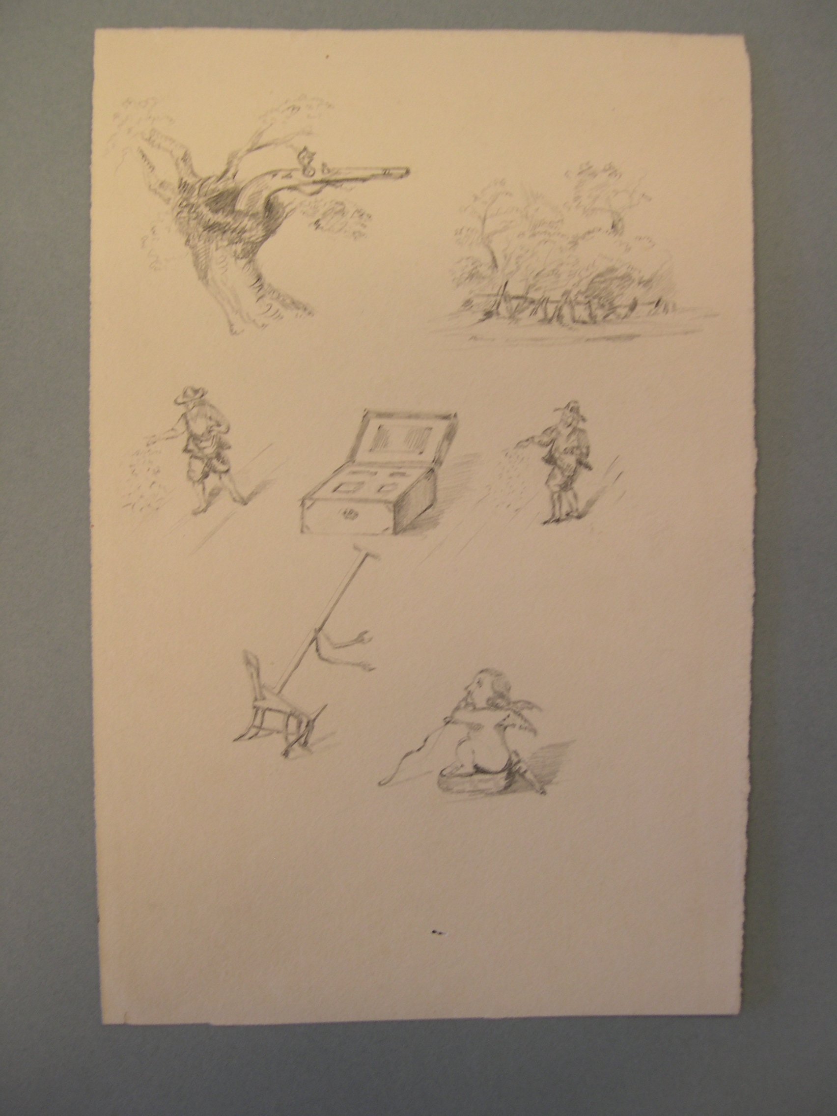 Zeven schetsen van o.a. een pistool, kistje en een e...
