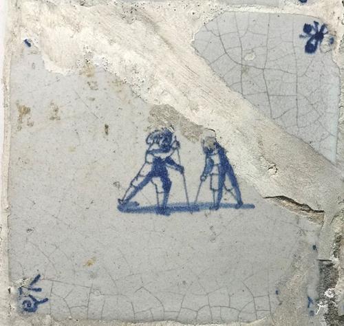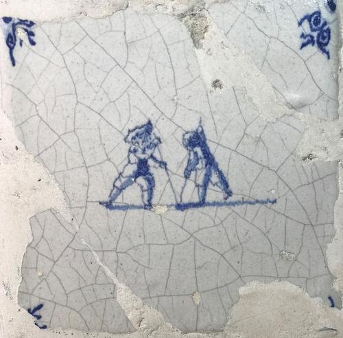 Tegel van aardewerk met tinglazuur voorstellende pol...