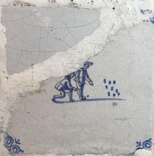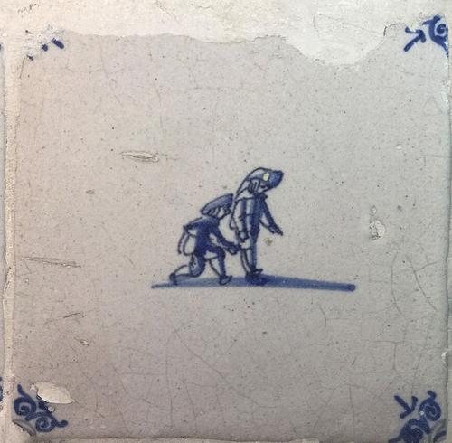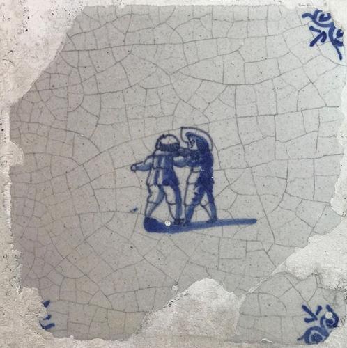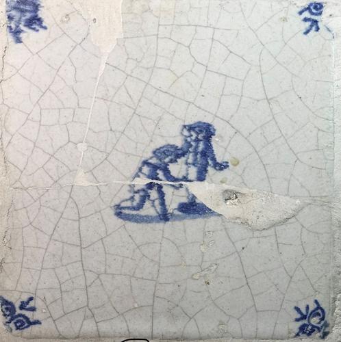 Tegel van aardewerk met tinglazuur voorstellende kin...