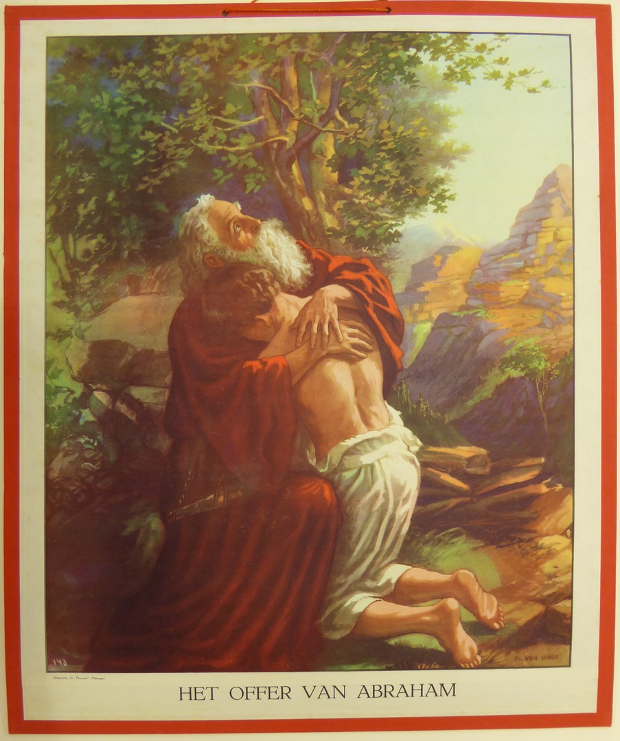 Het offer van Abraham, met Abraham met armen om Isaa...