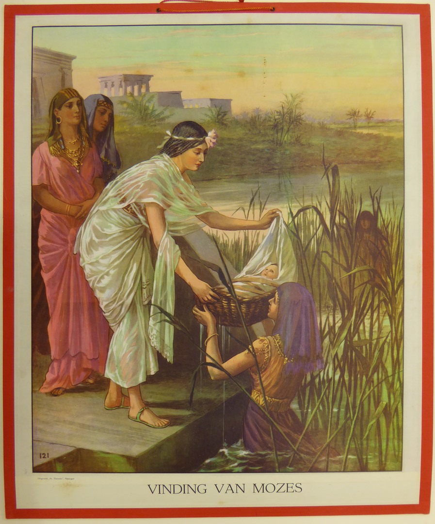 Vinding van Mozes, met mandje dat uit water wordt ge...