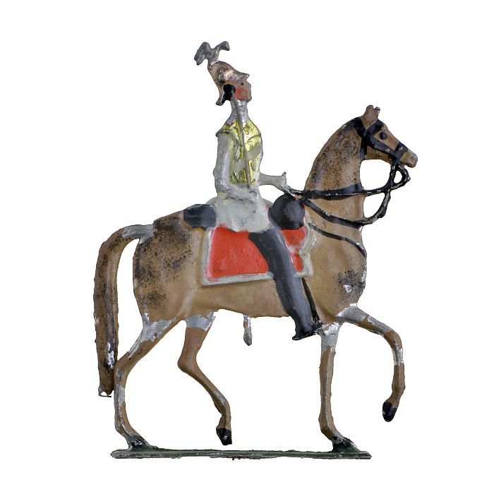 Tinnen figuur in de vorm van cavalerieofficier te paard