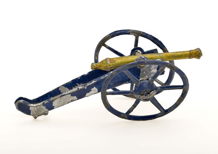 Tinnen figuur van een kanon uit de Frans-Duitse oorlog