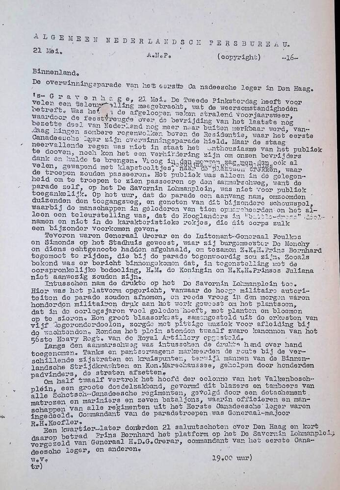Algemeen Nederlandsch Persbureau, mededelingen, buit...