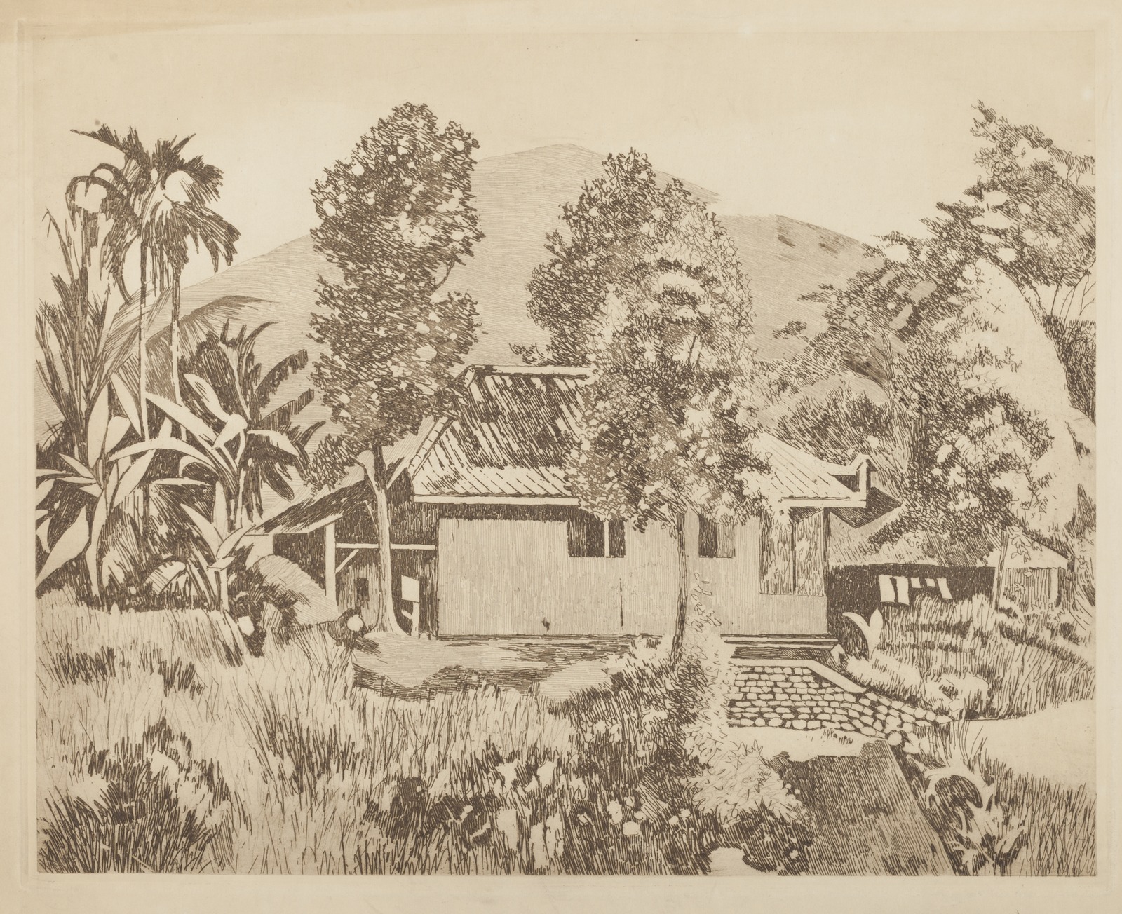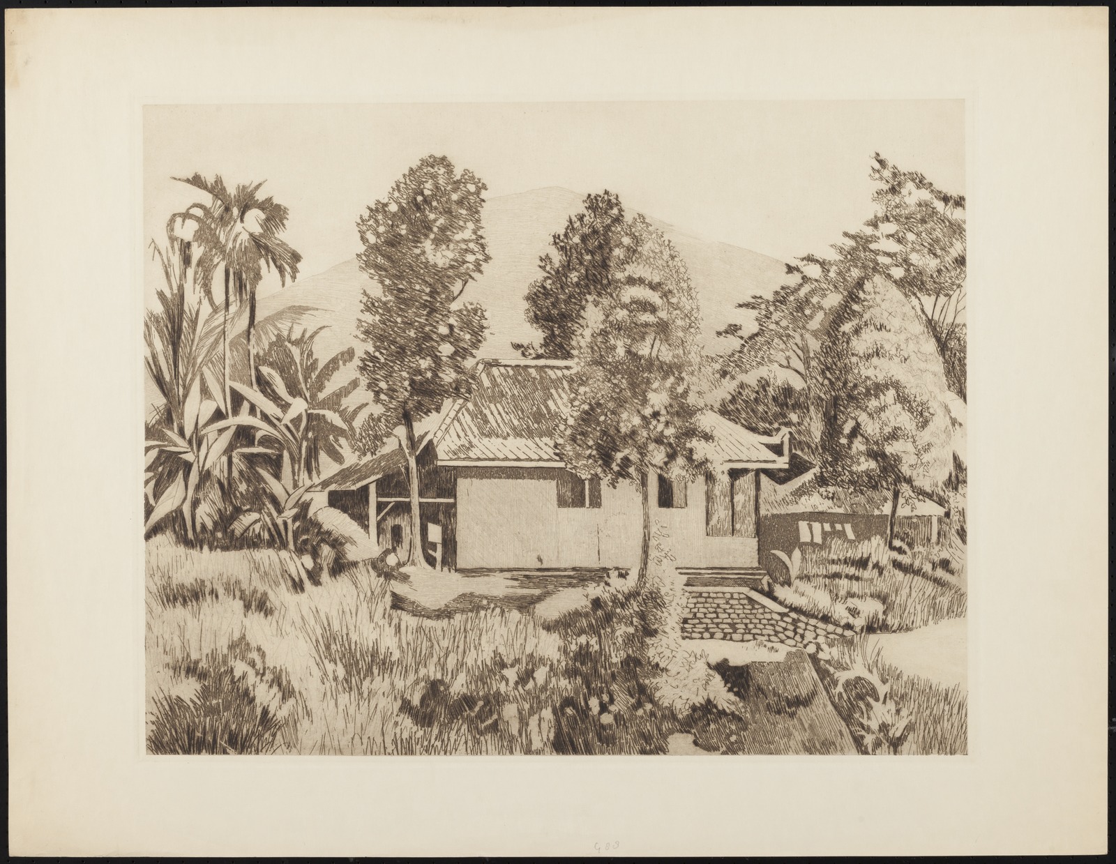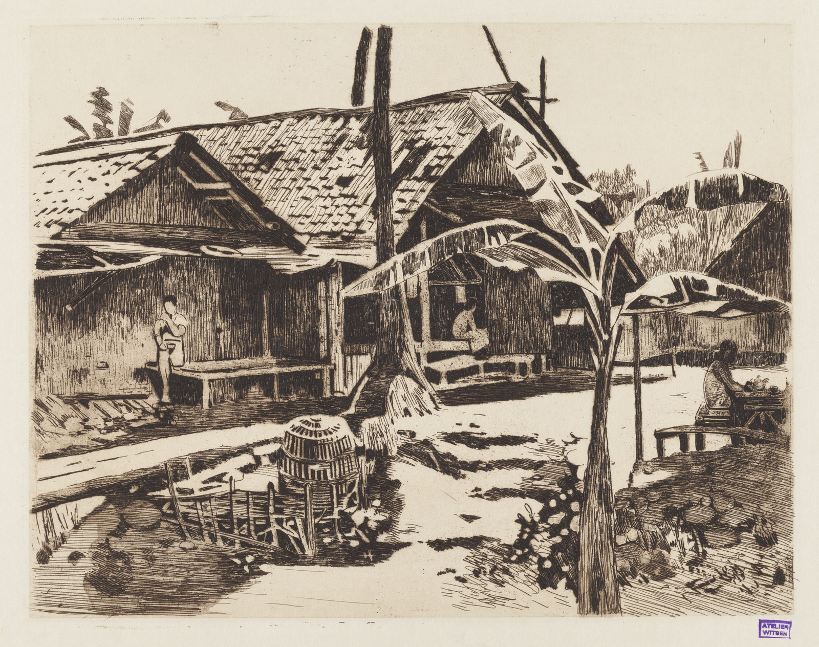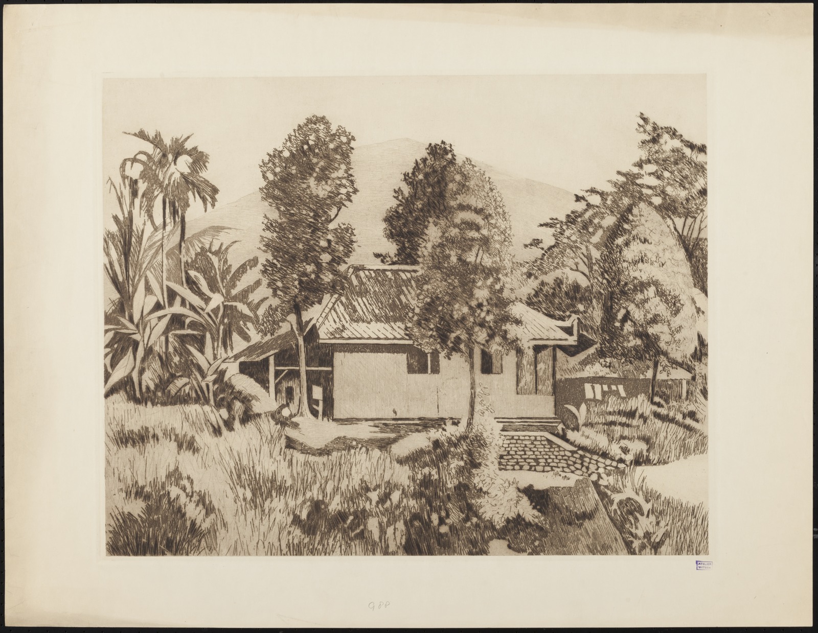 Pisangboom in een kampong in Buitenzorg