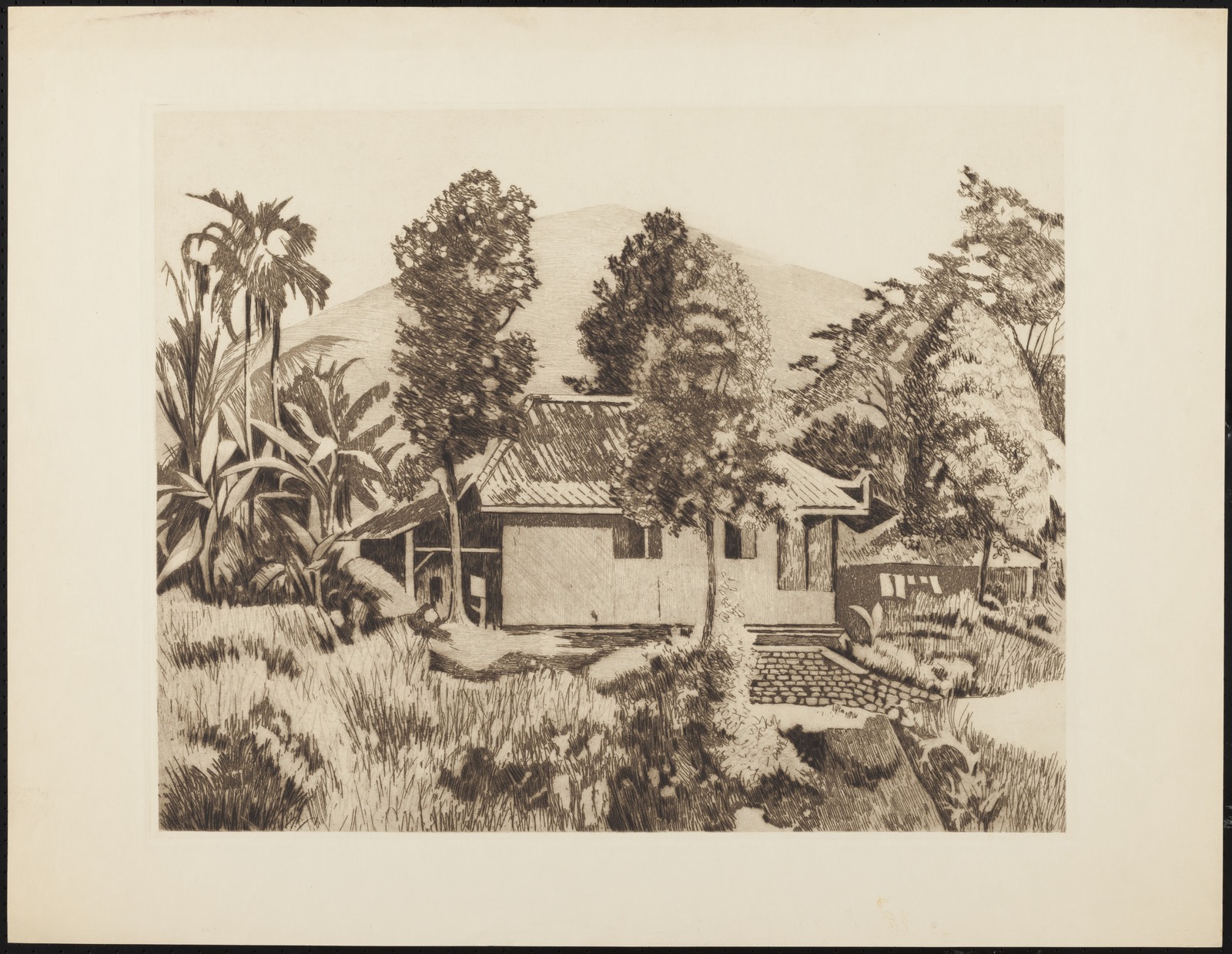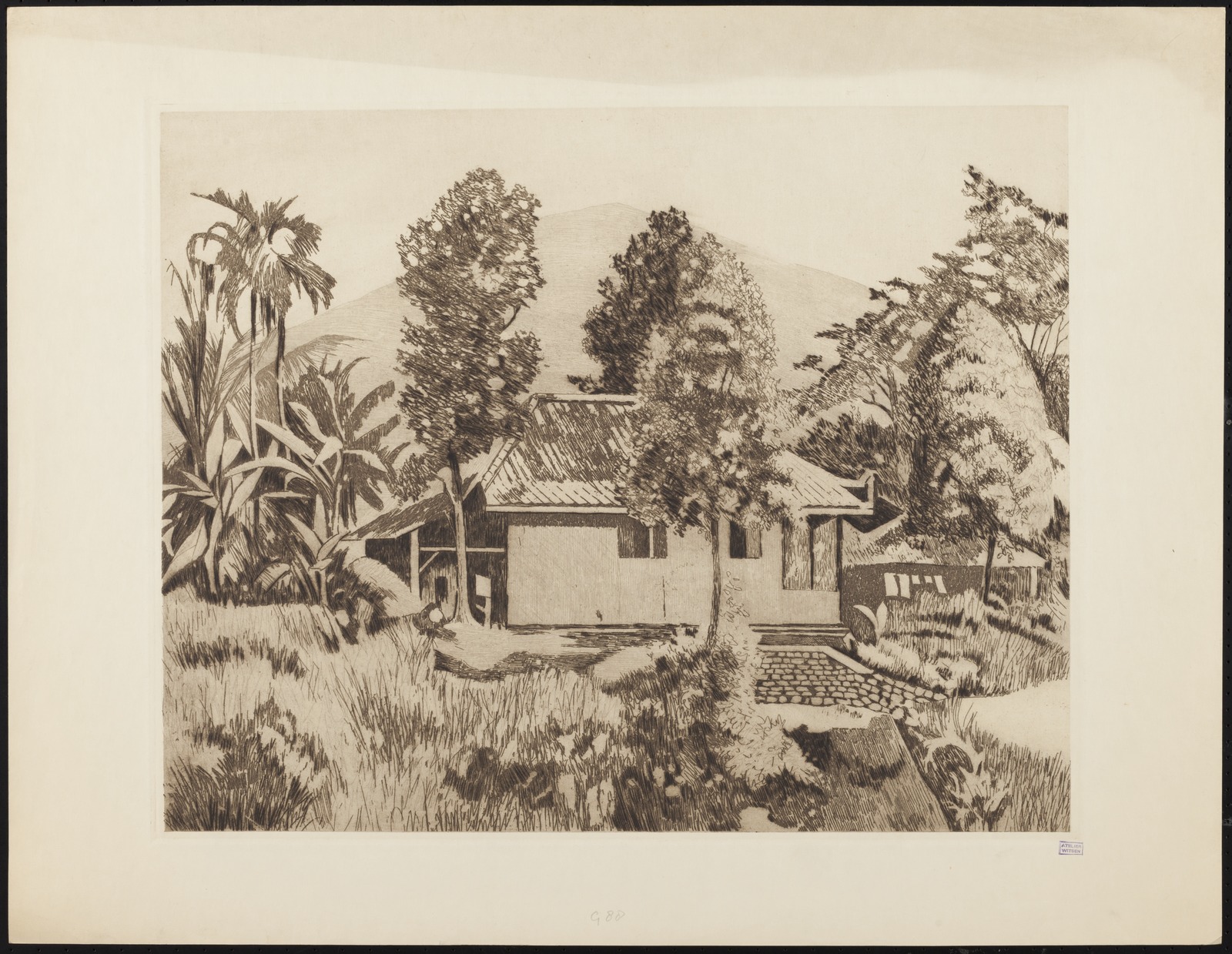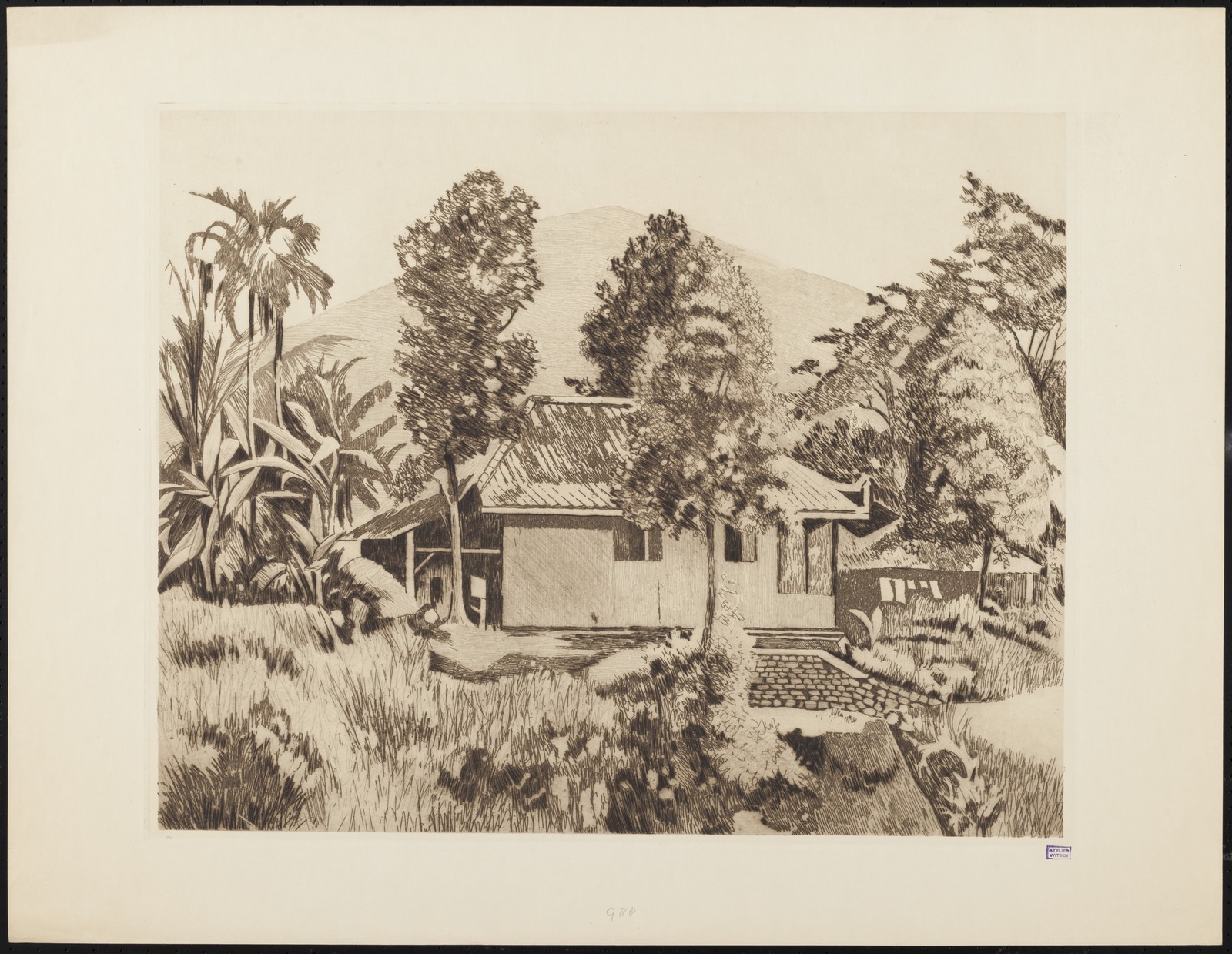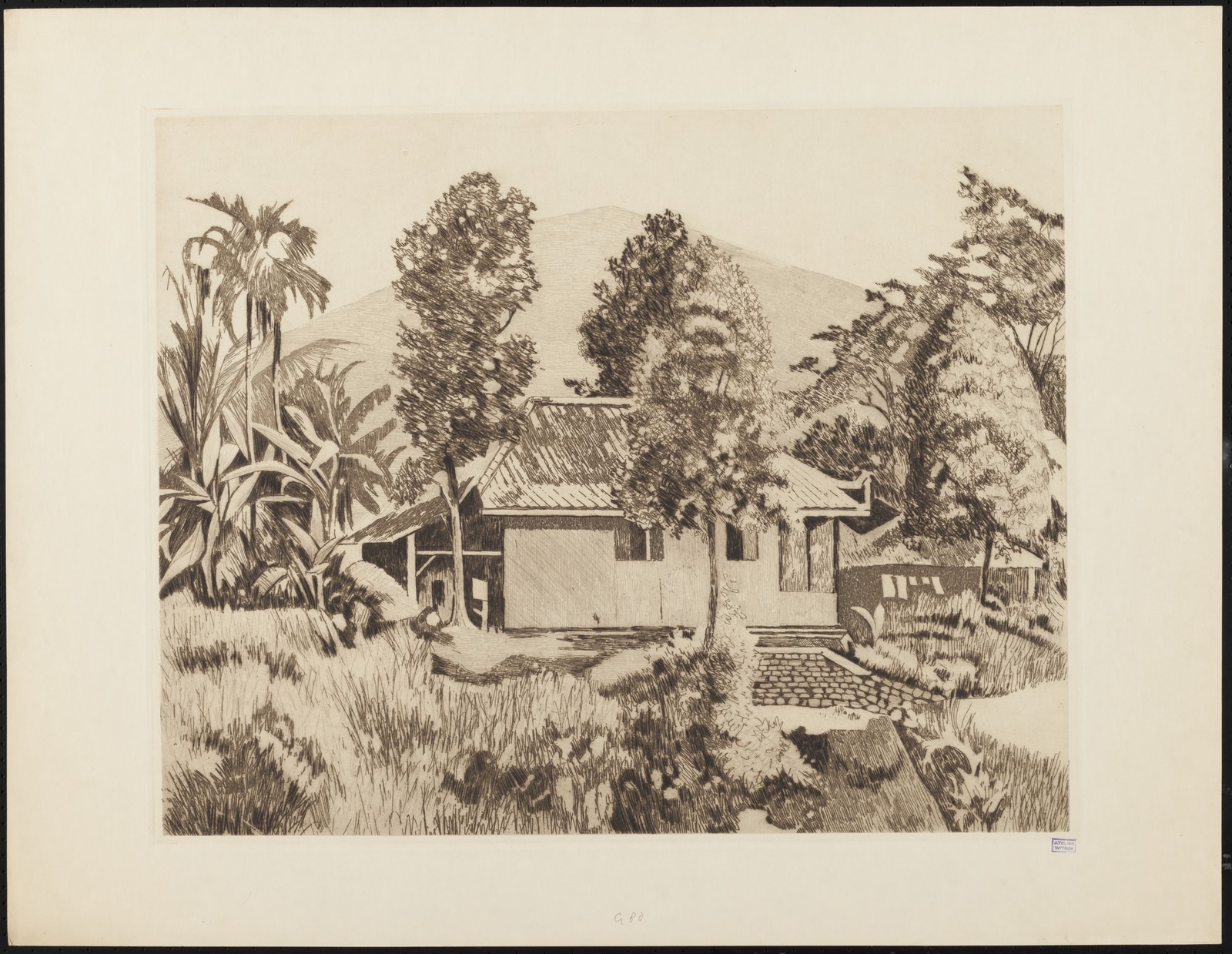 Pisangboom in een kampong in Buitenzorg
