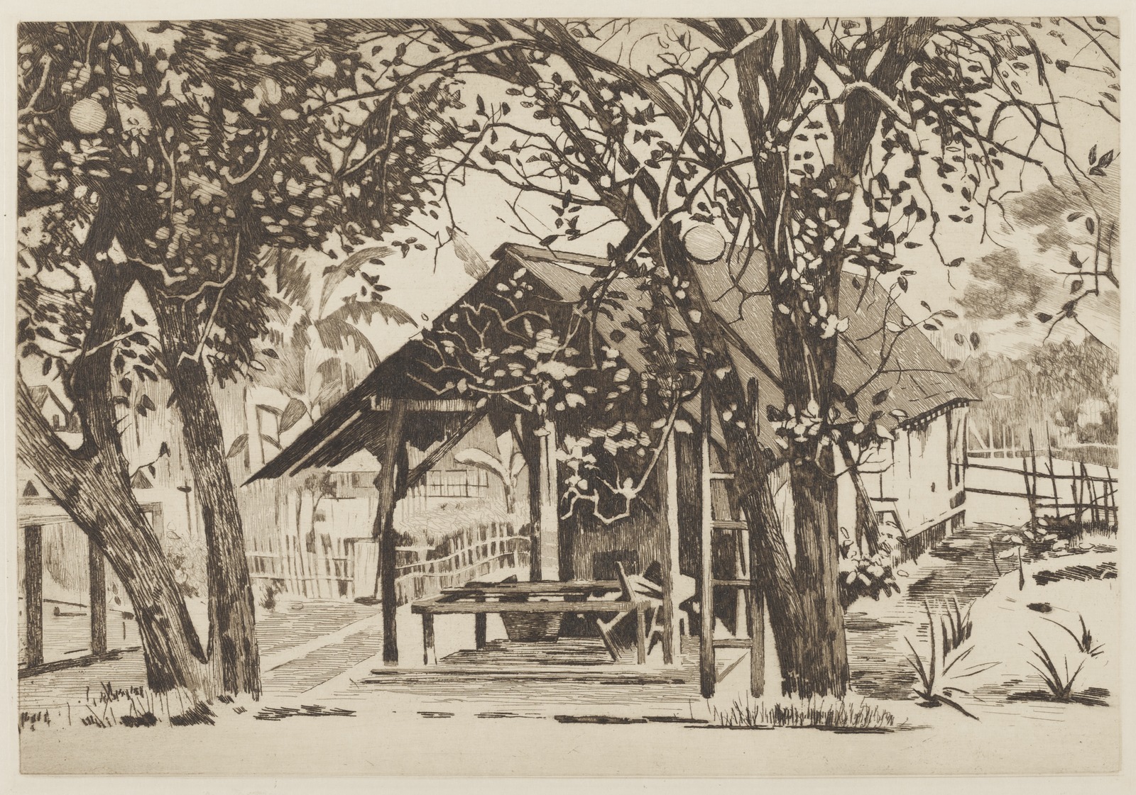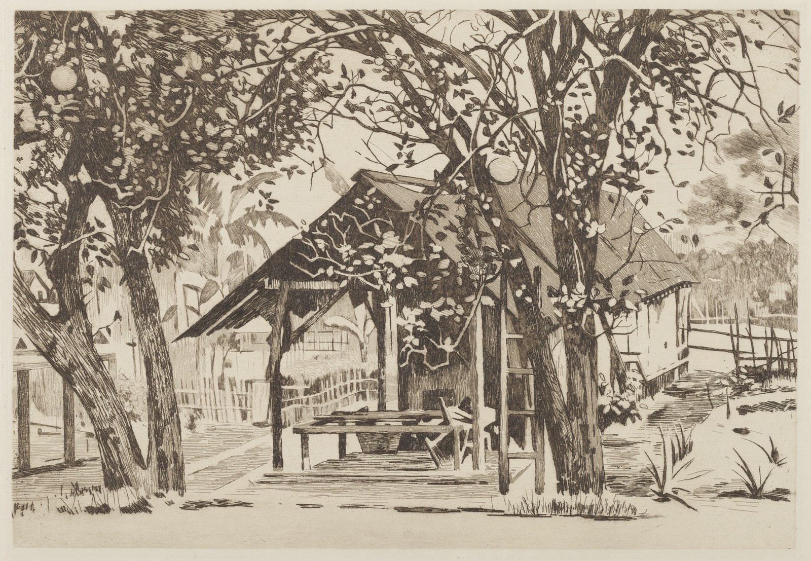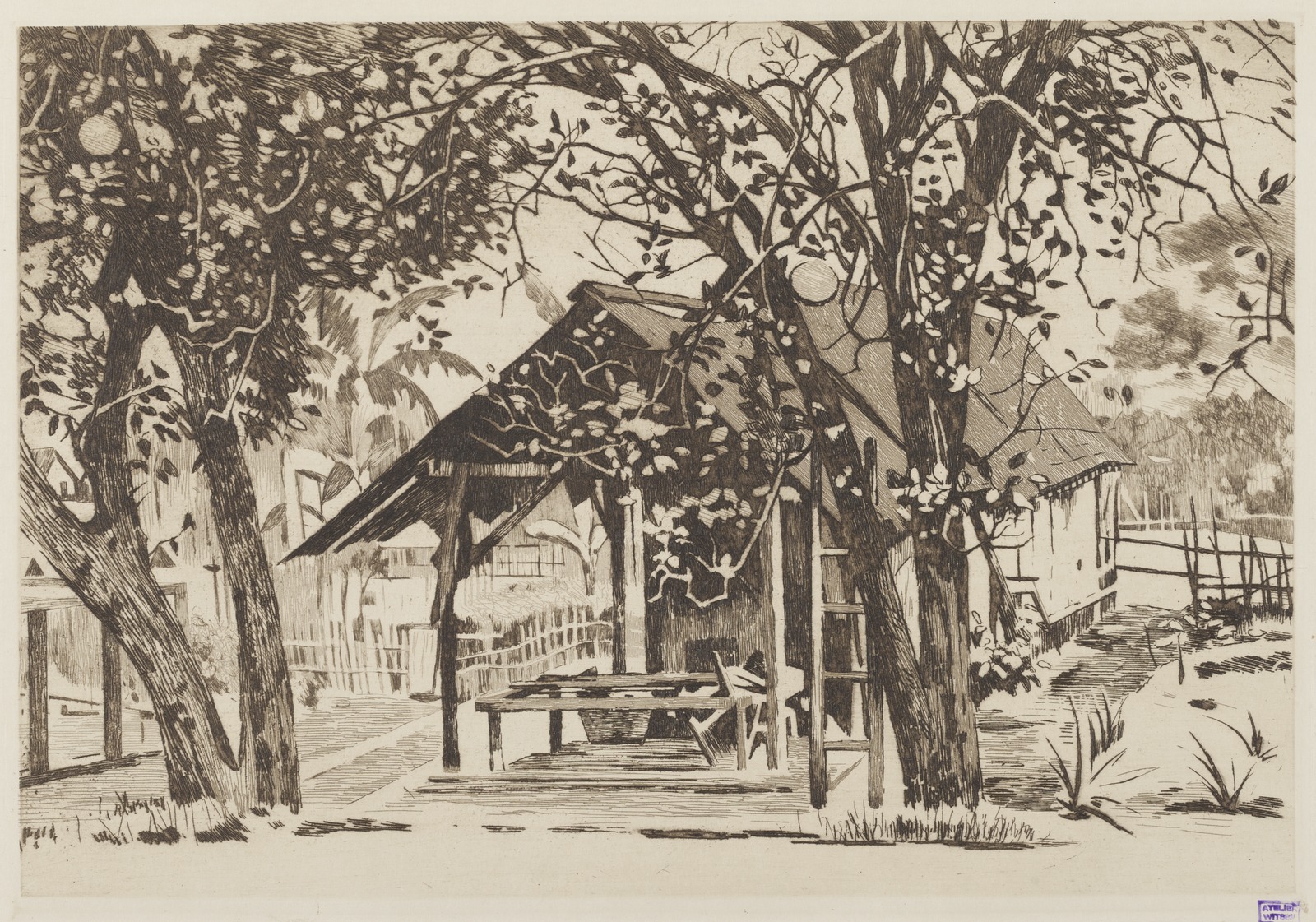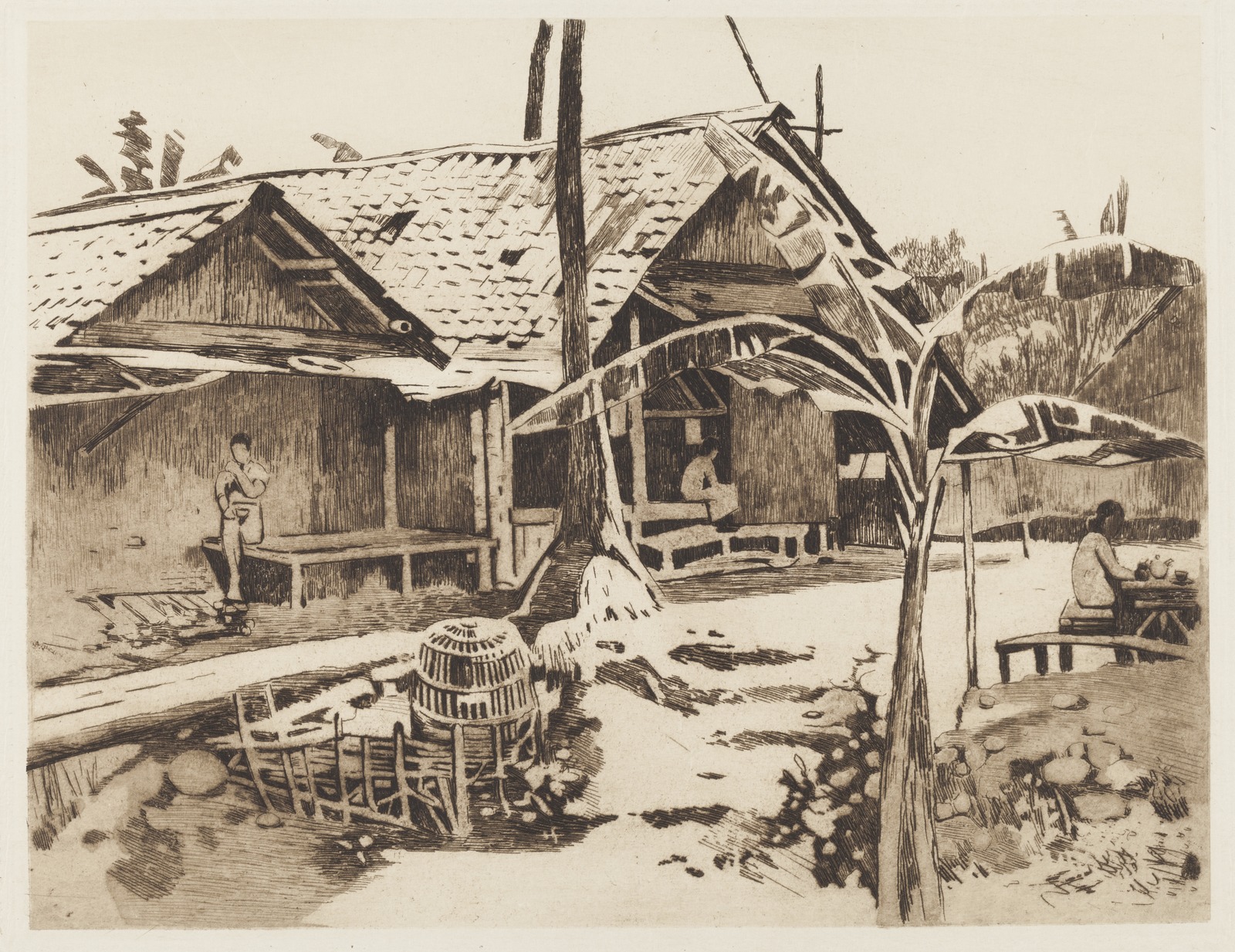 Pisangboom in een kampong in Buitenzorg