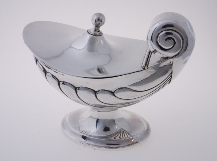 Zilveren kandijbak op pootjes met deksel