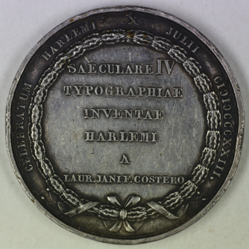 Zilveren penning vierde eeuwfeest boekdrukkunst. 1823