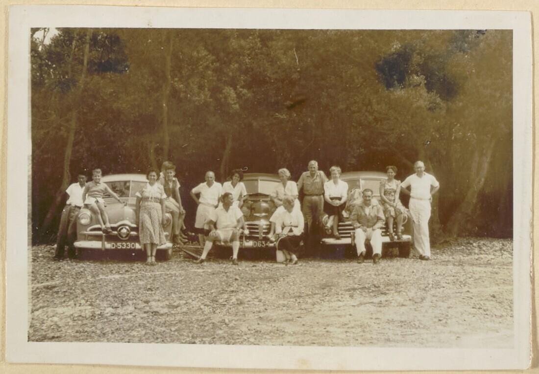 Groep Indo - Europese mensen op parkeerplaats bij de...