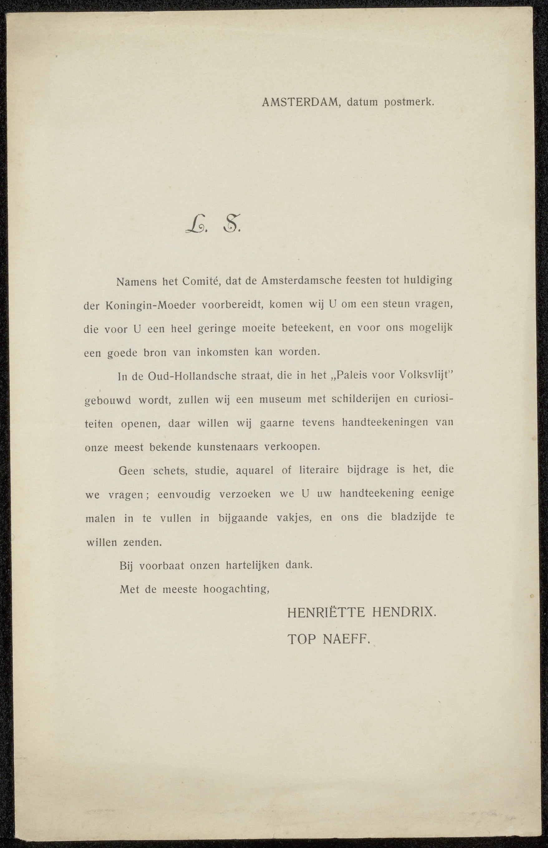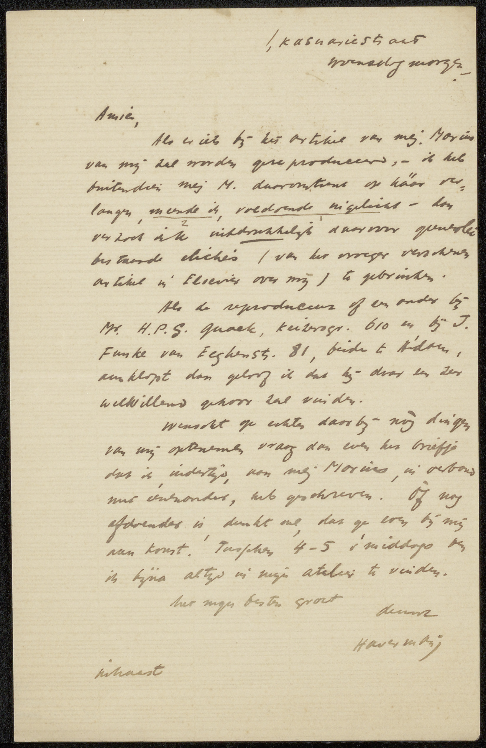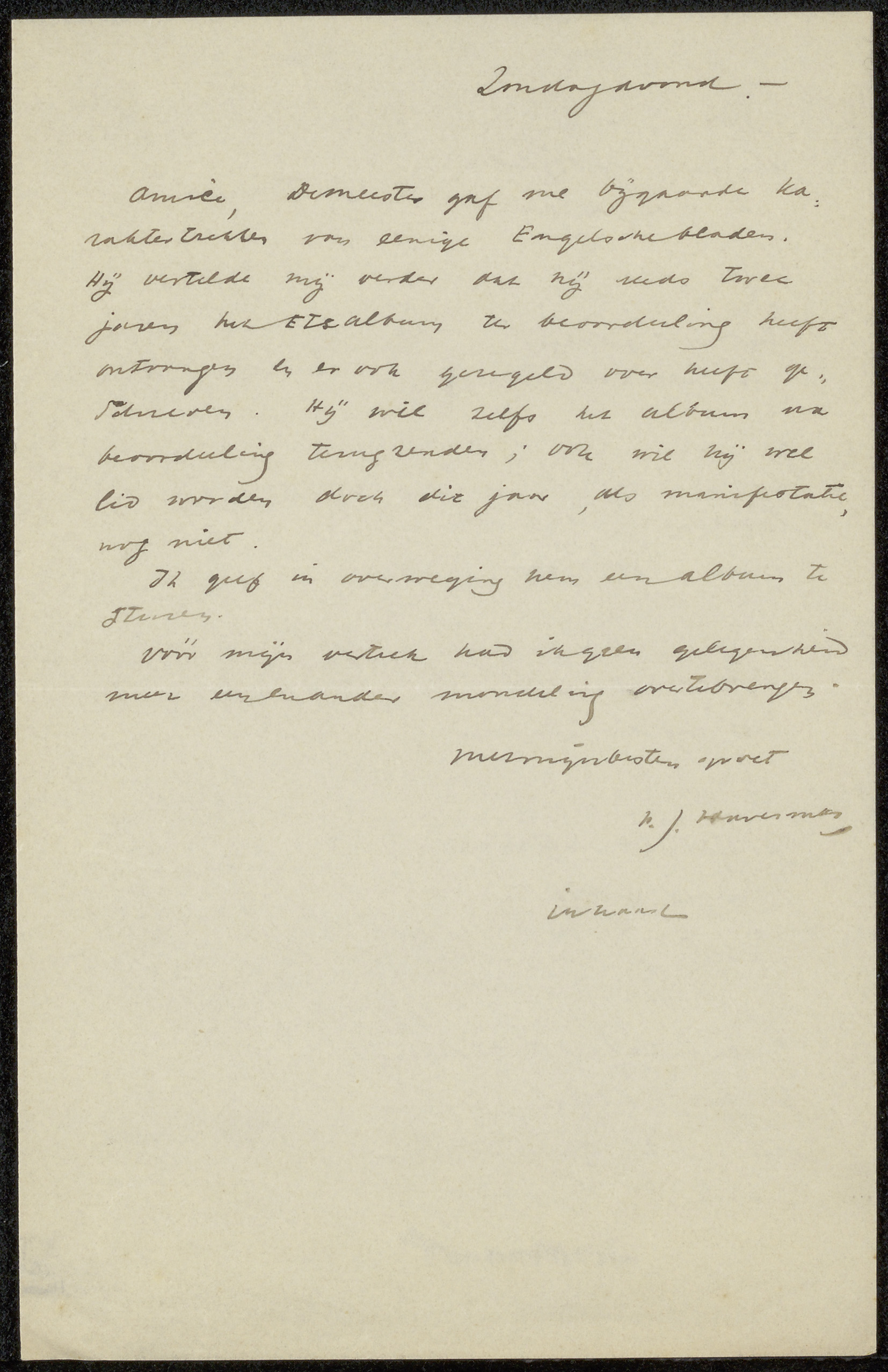 Brief aan de redactie van het Amsterdamsche Weekblad