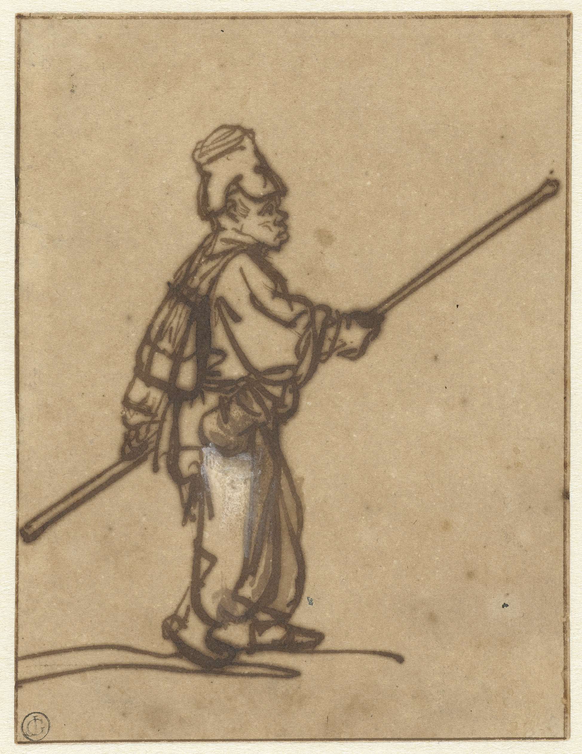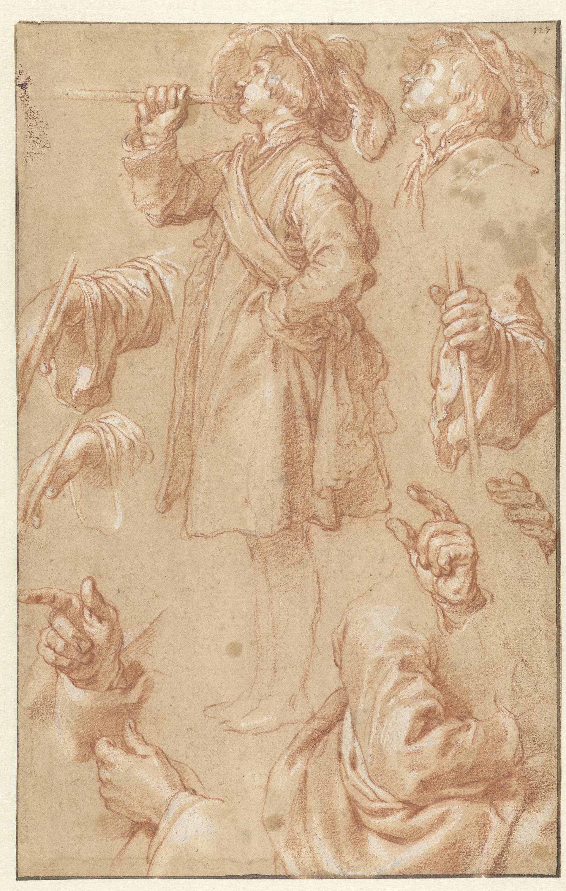 Studies van een staande trompetter en studies van ha...