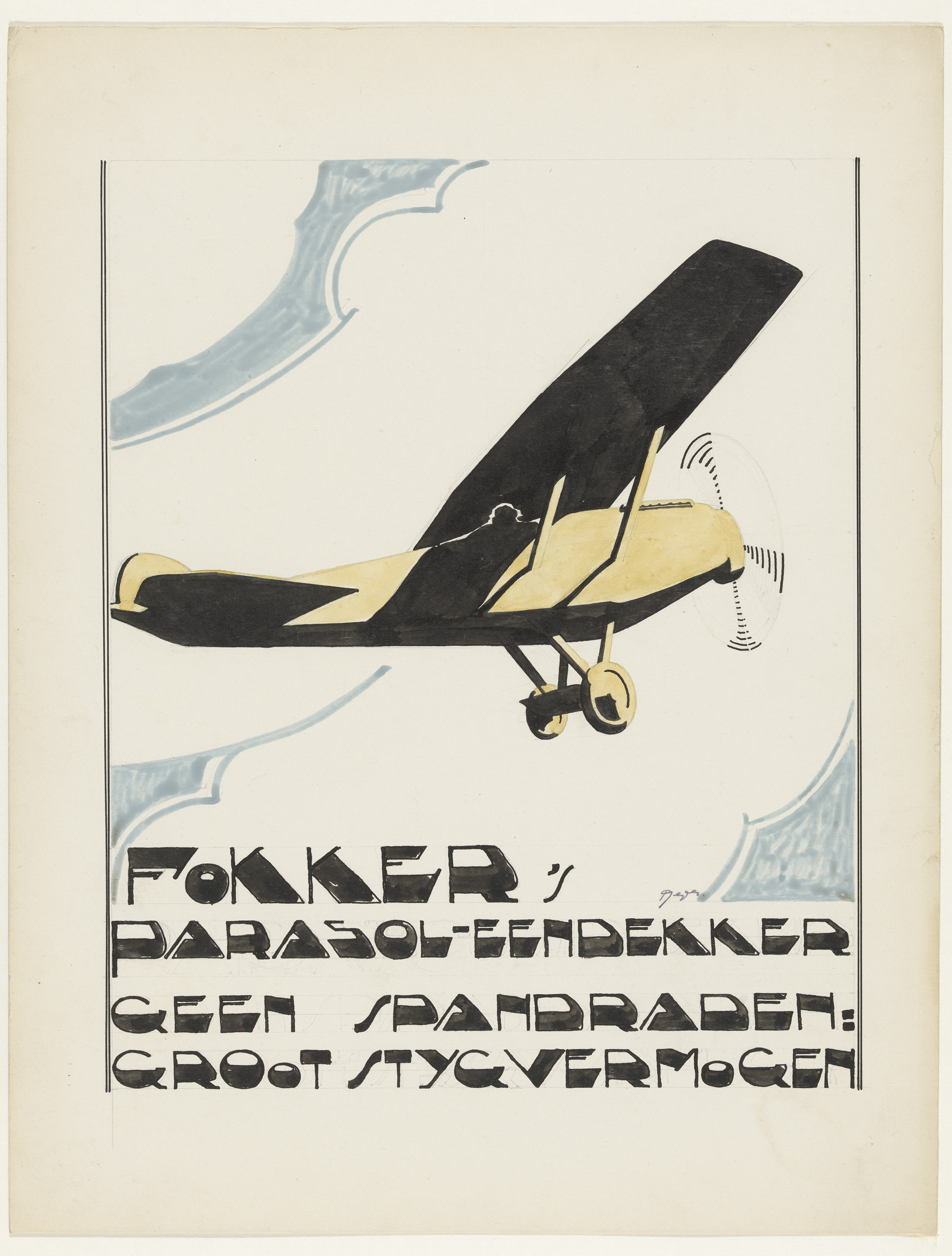 Fokker's parasol-eendekker. Geen spandraden: groot s...