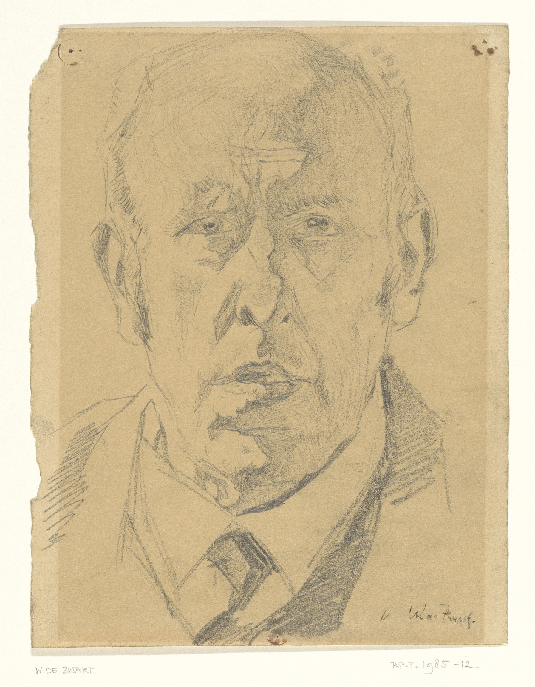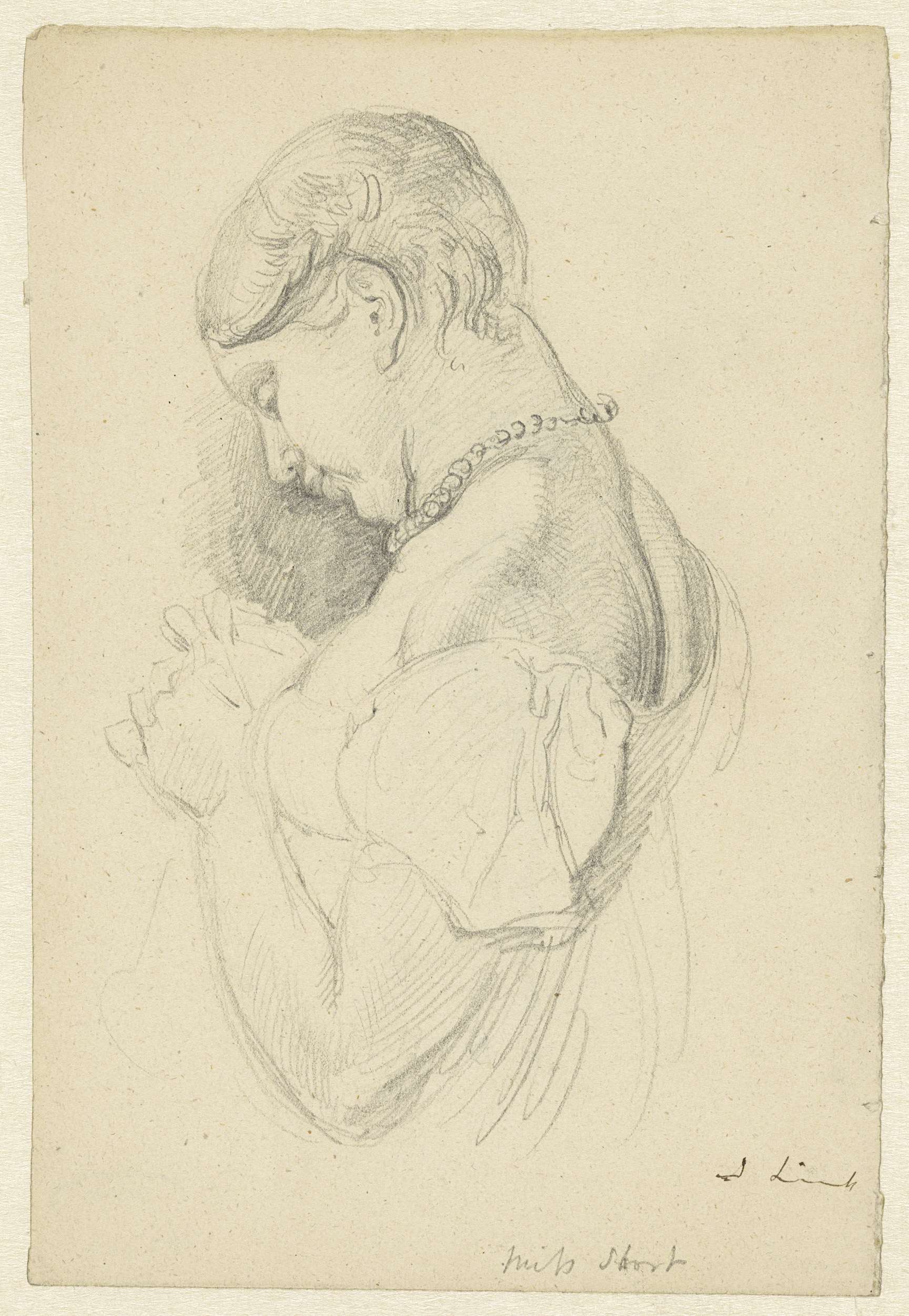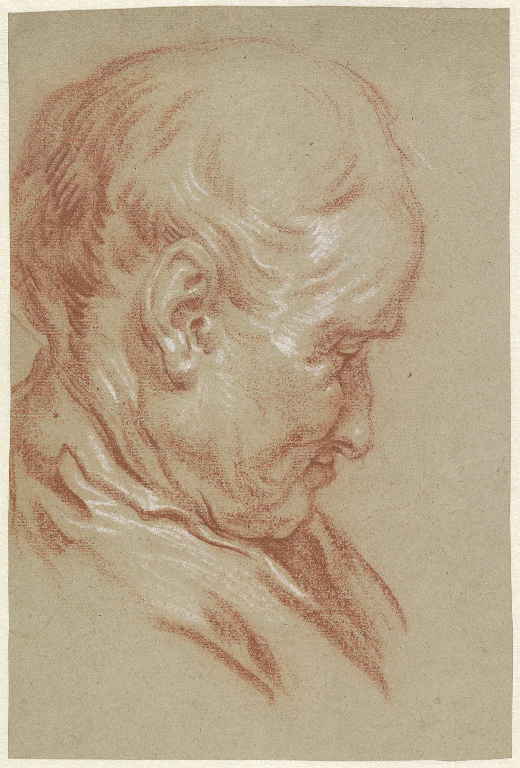 Hoofd van een oude man, en profil naar rechts