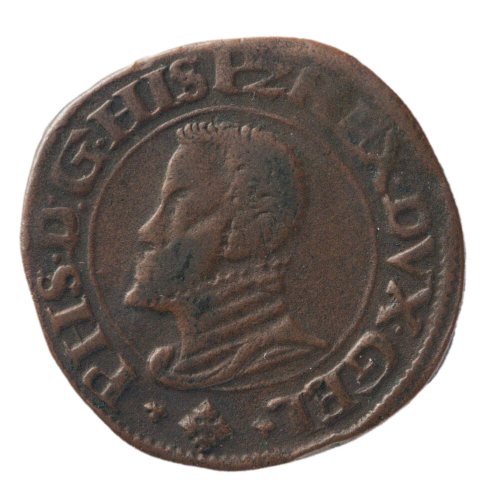 Duit uit Gelderland op naam van Philips II