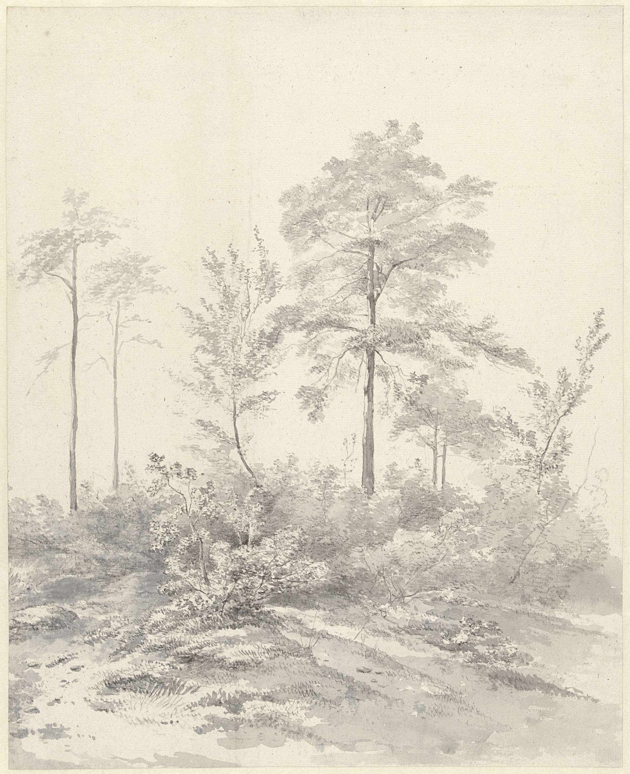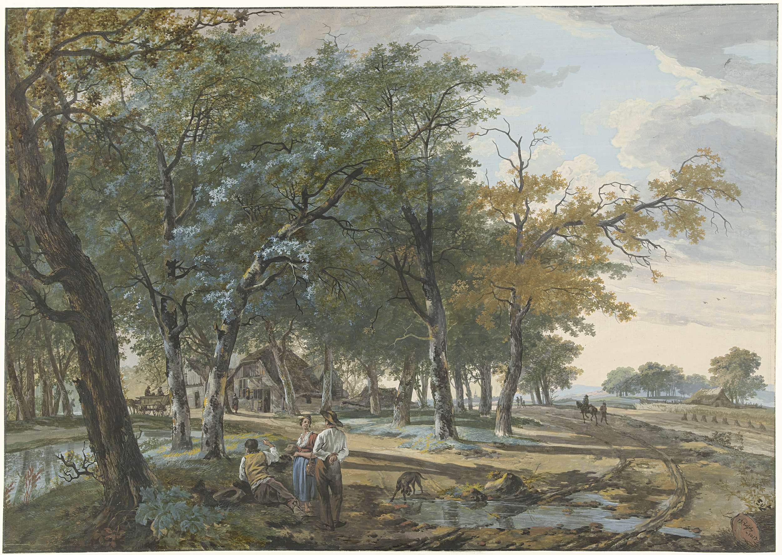 Rustende reizigers in een boomrijk landschap