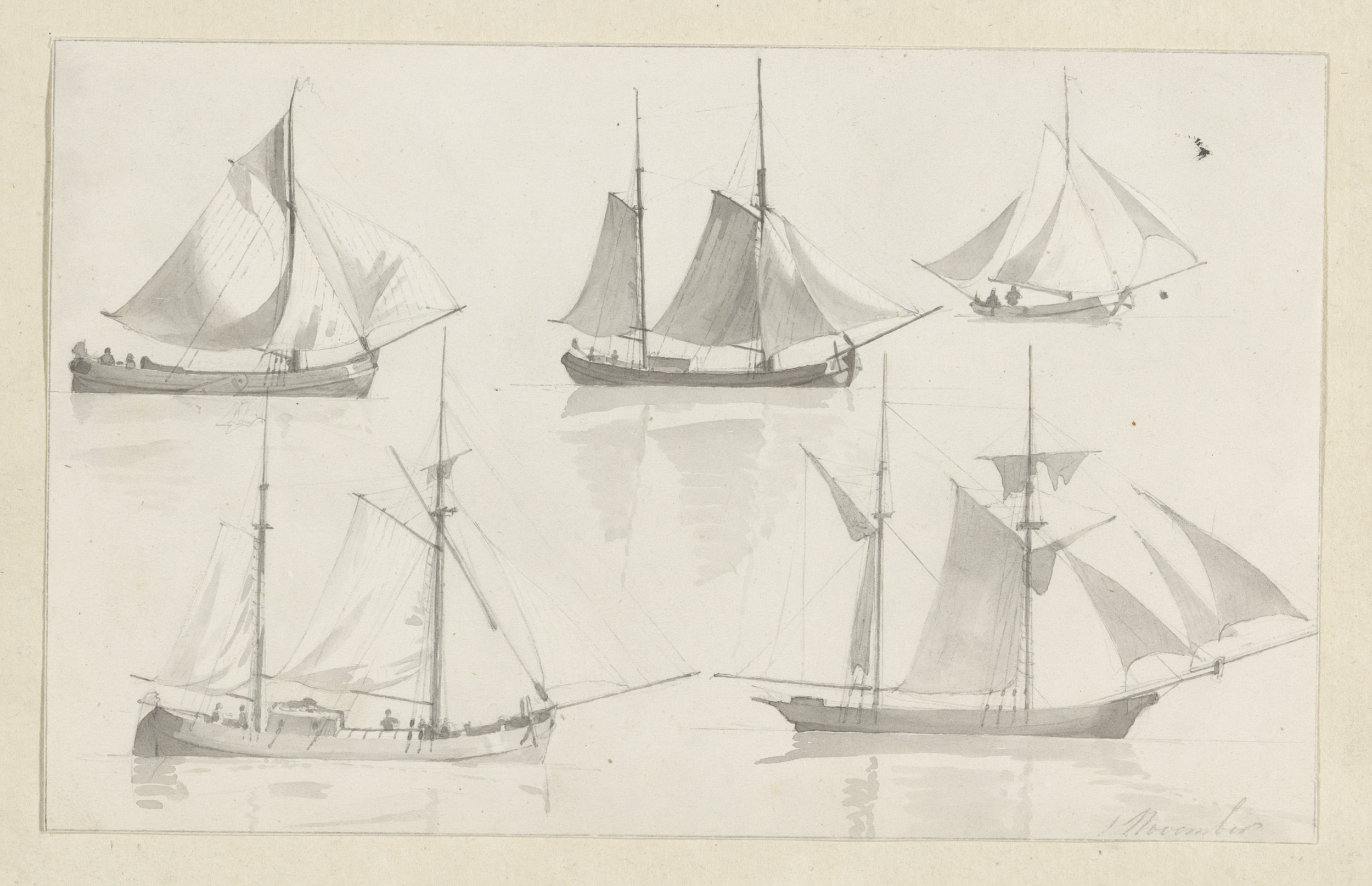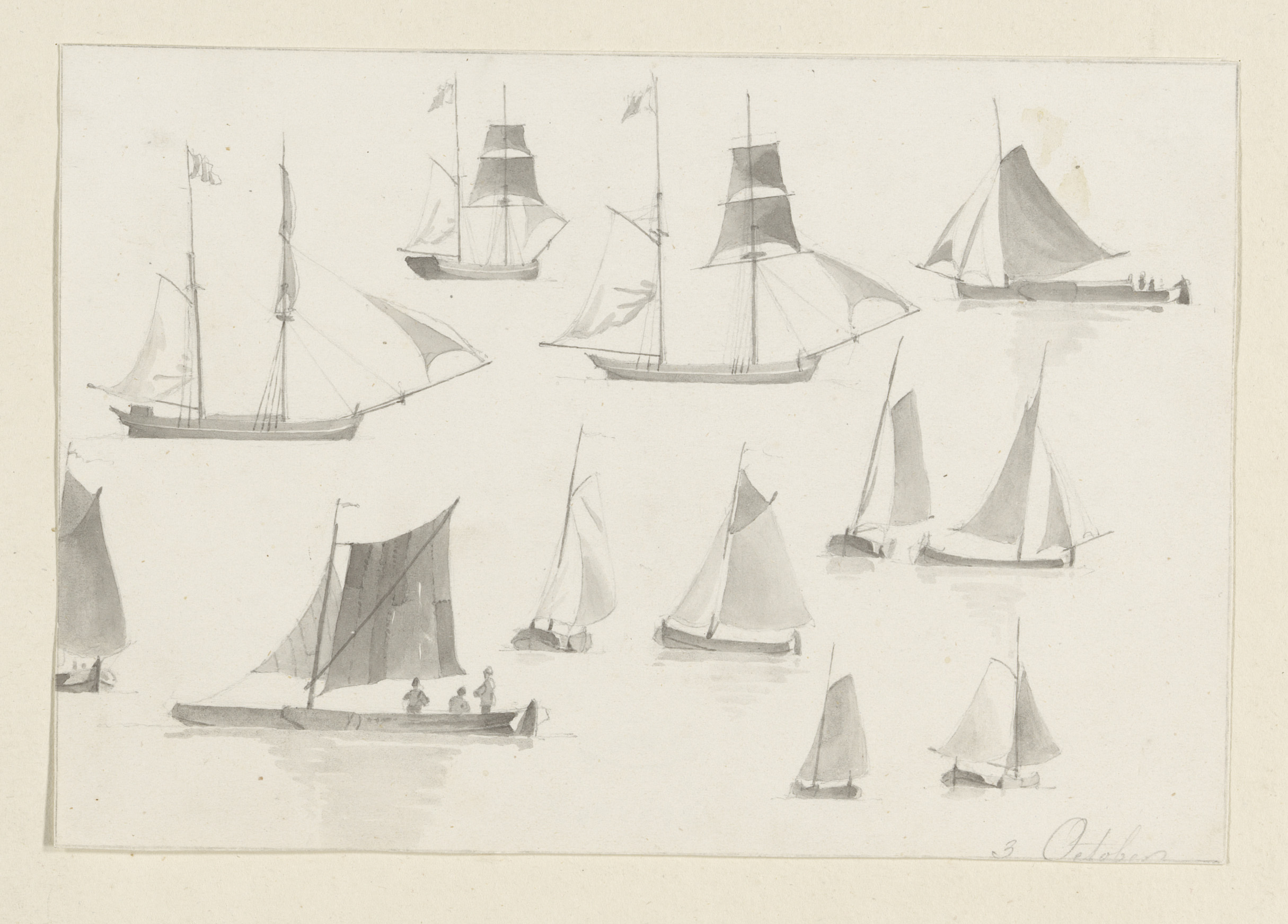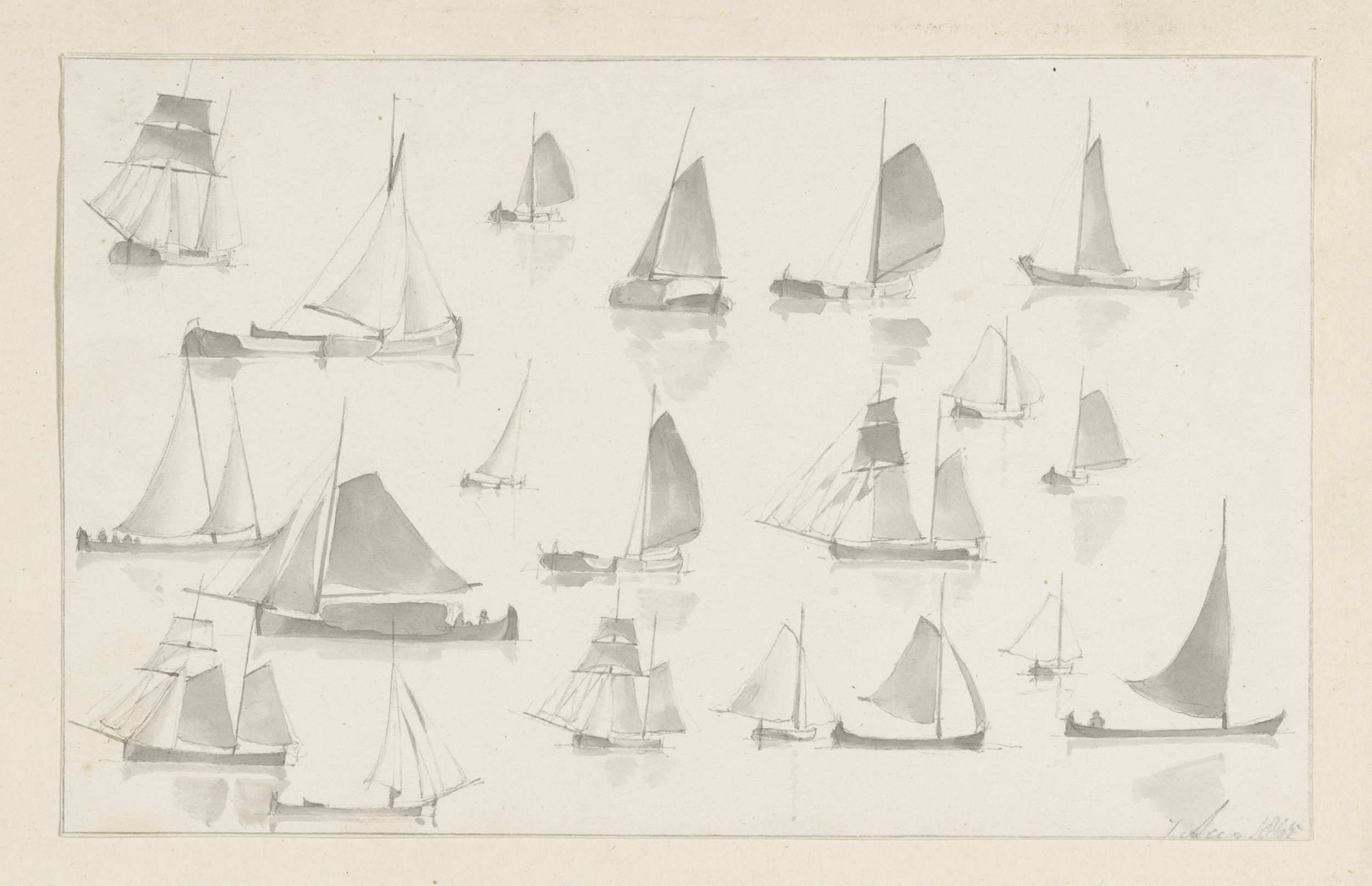Schetsblad met zeilvaartuigen