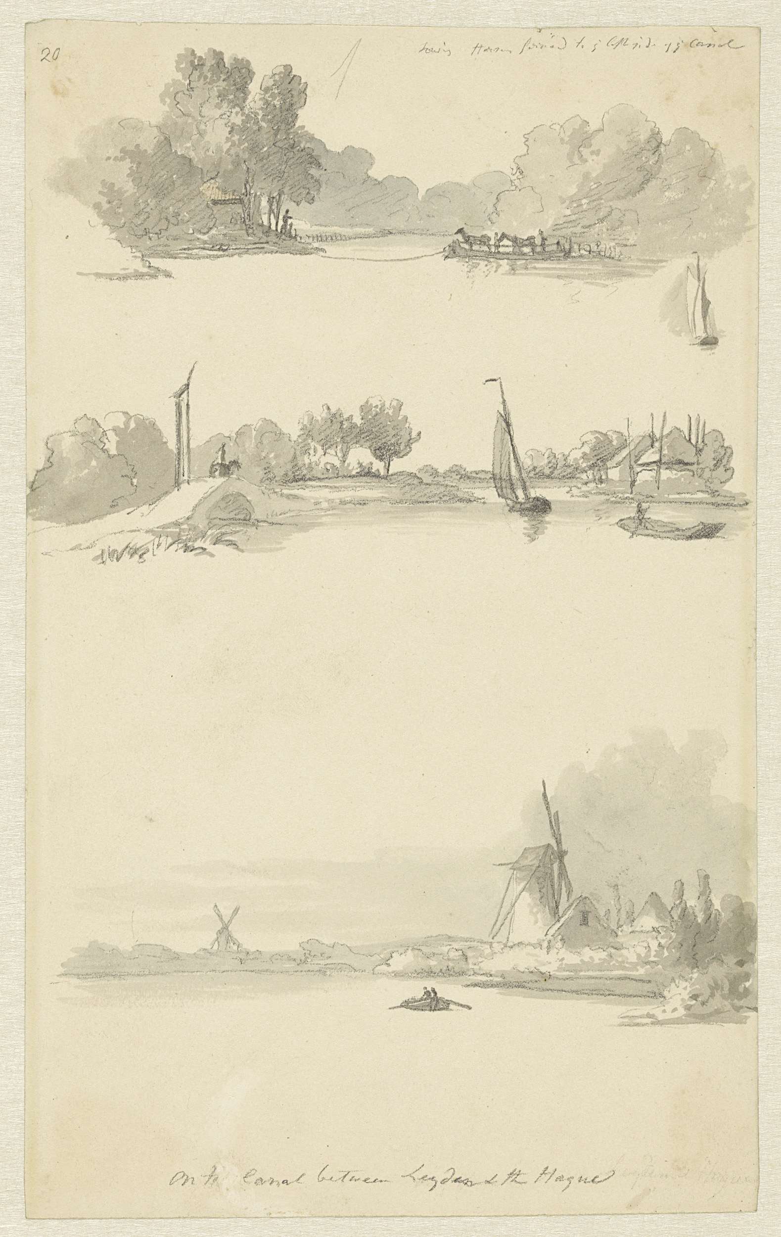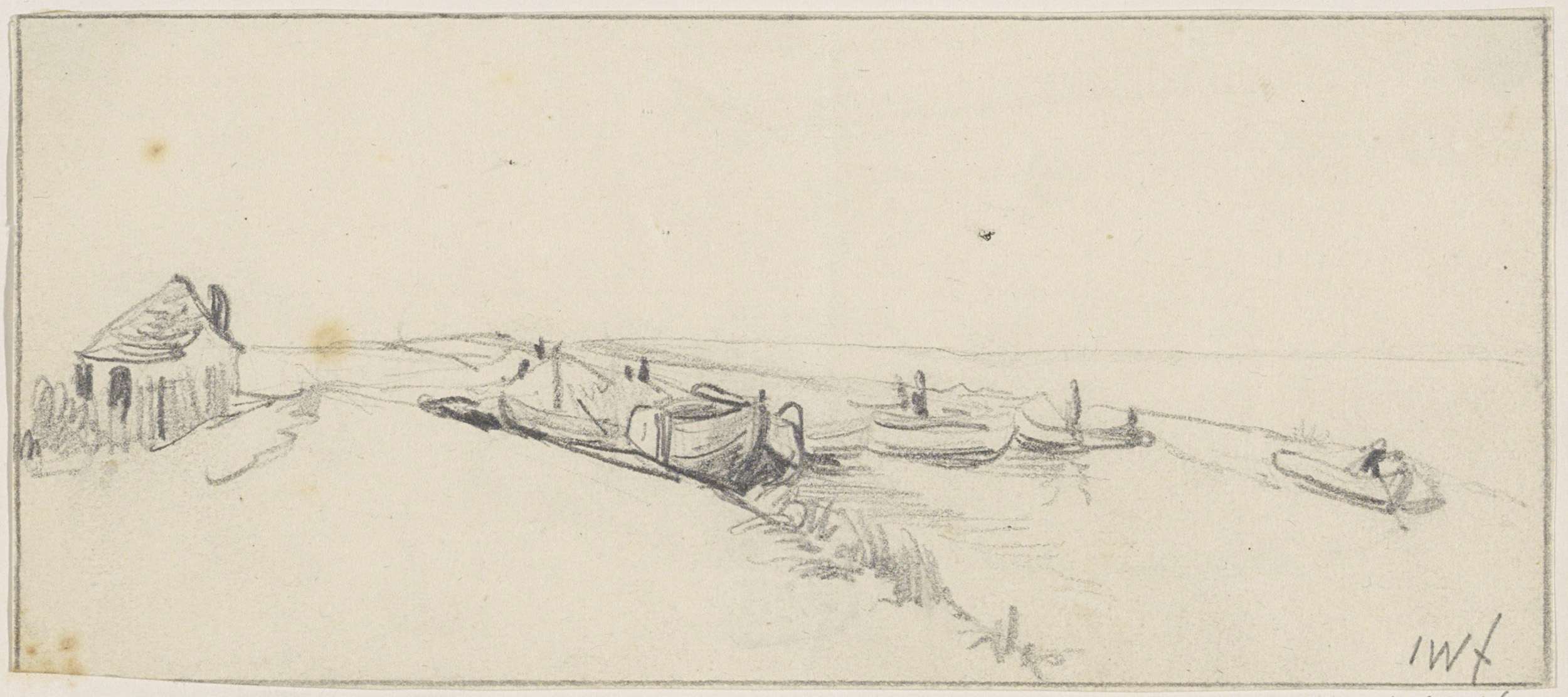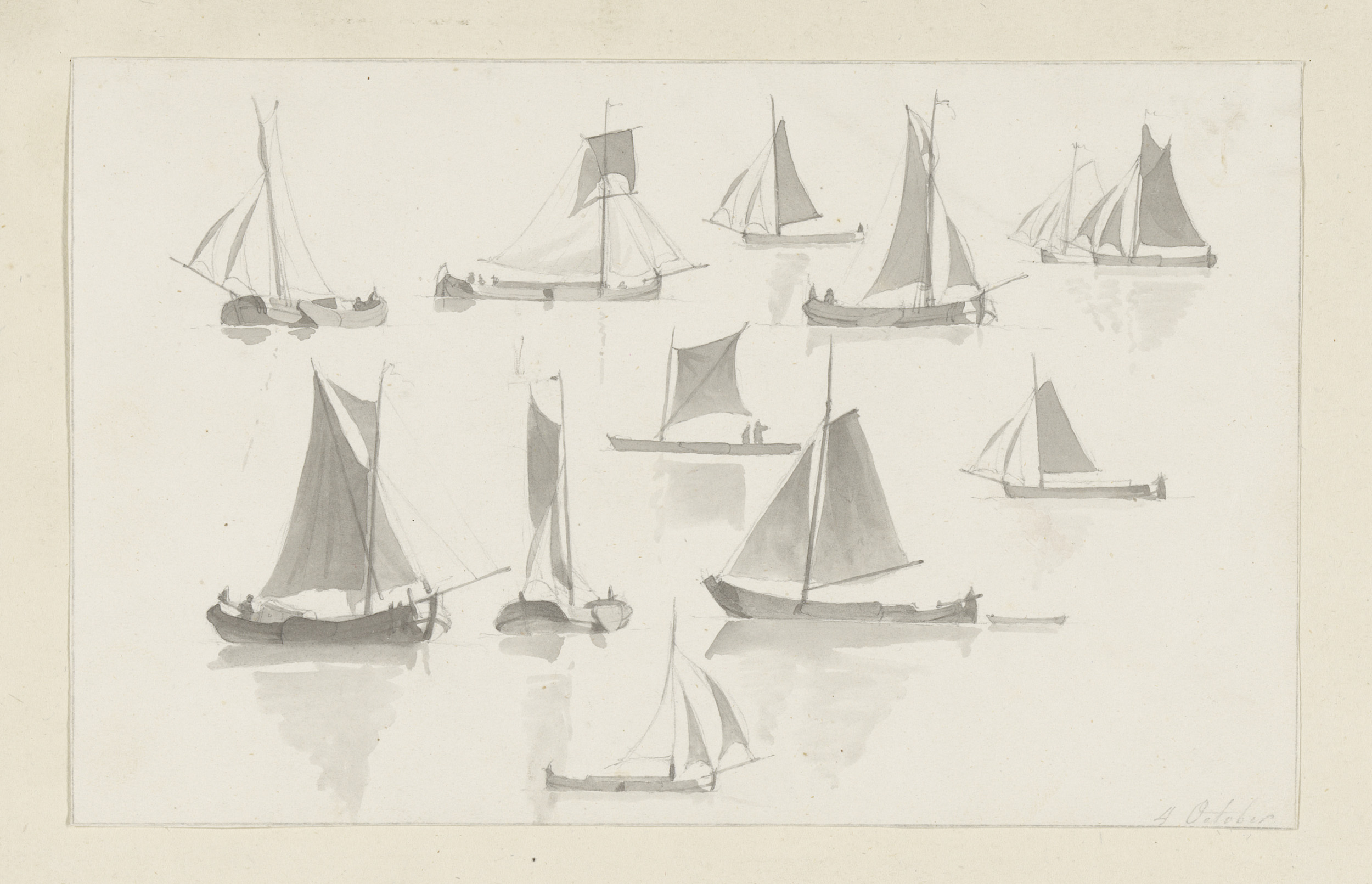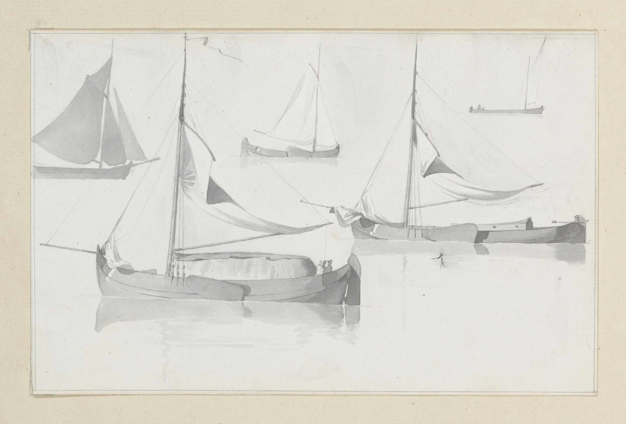 Schetsblad met zeilvaartuigen