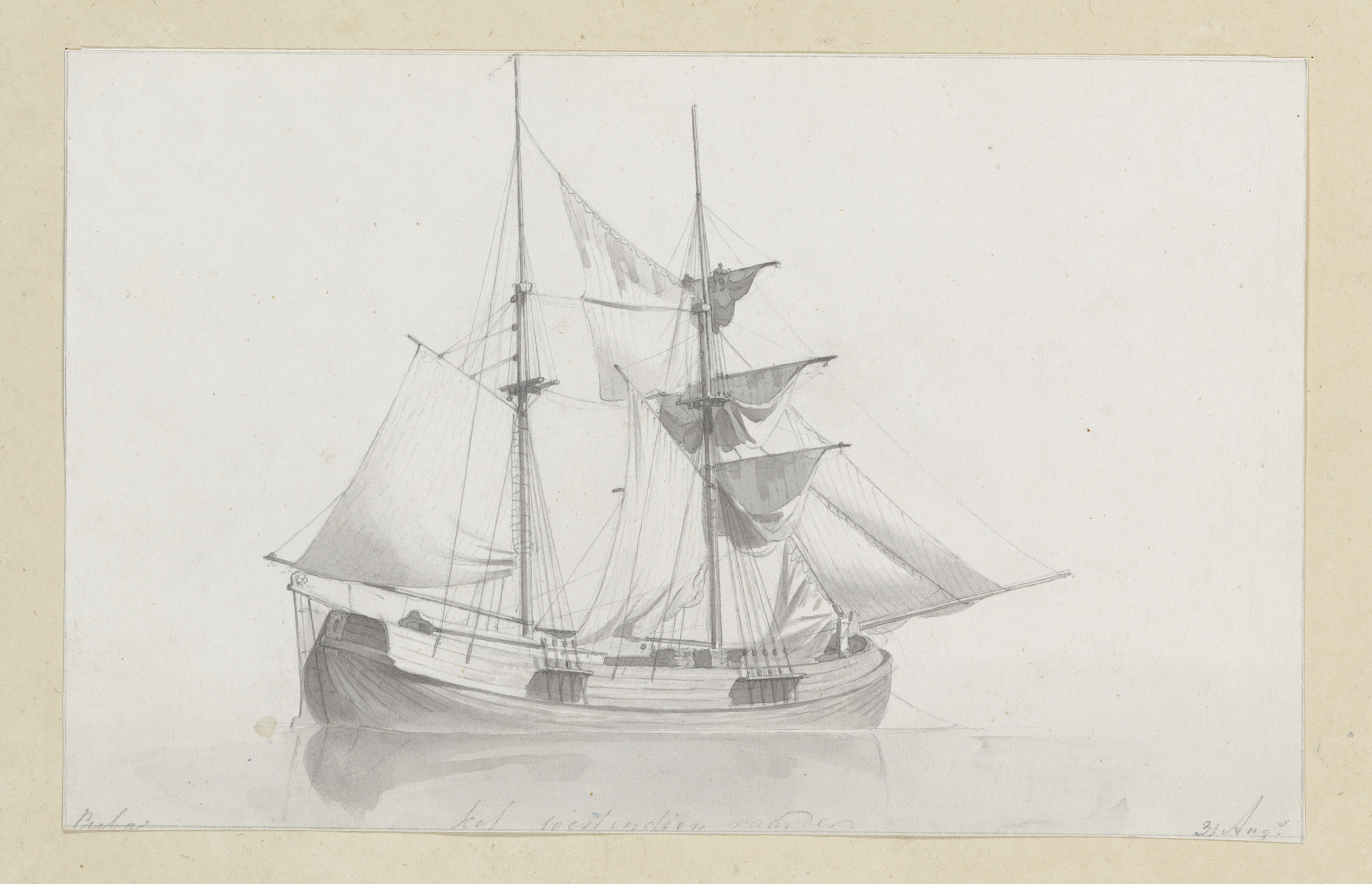 Studieblad met zeilschepen