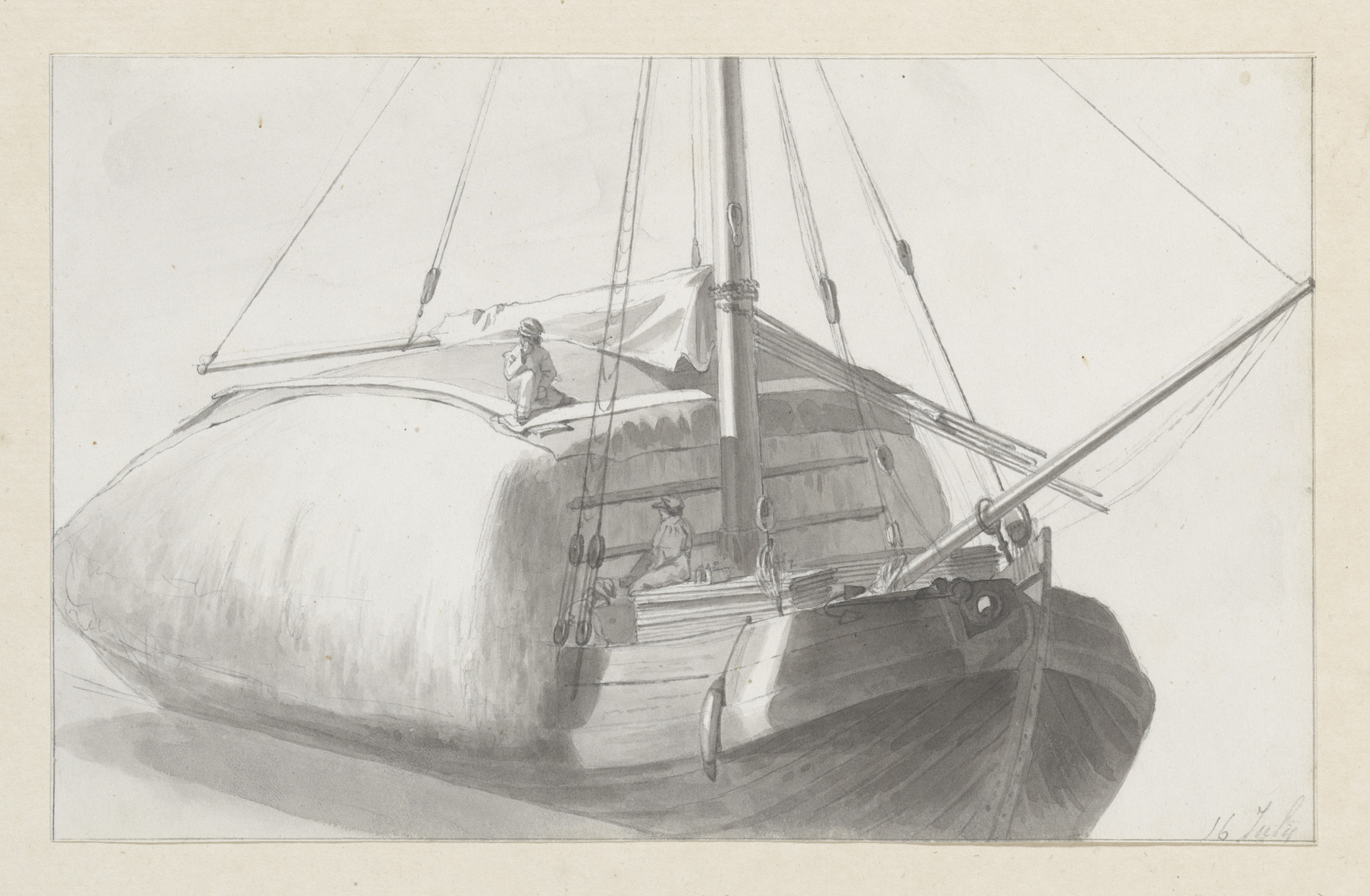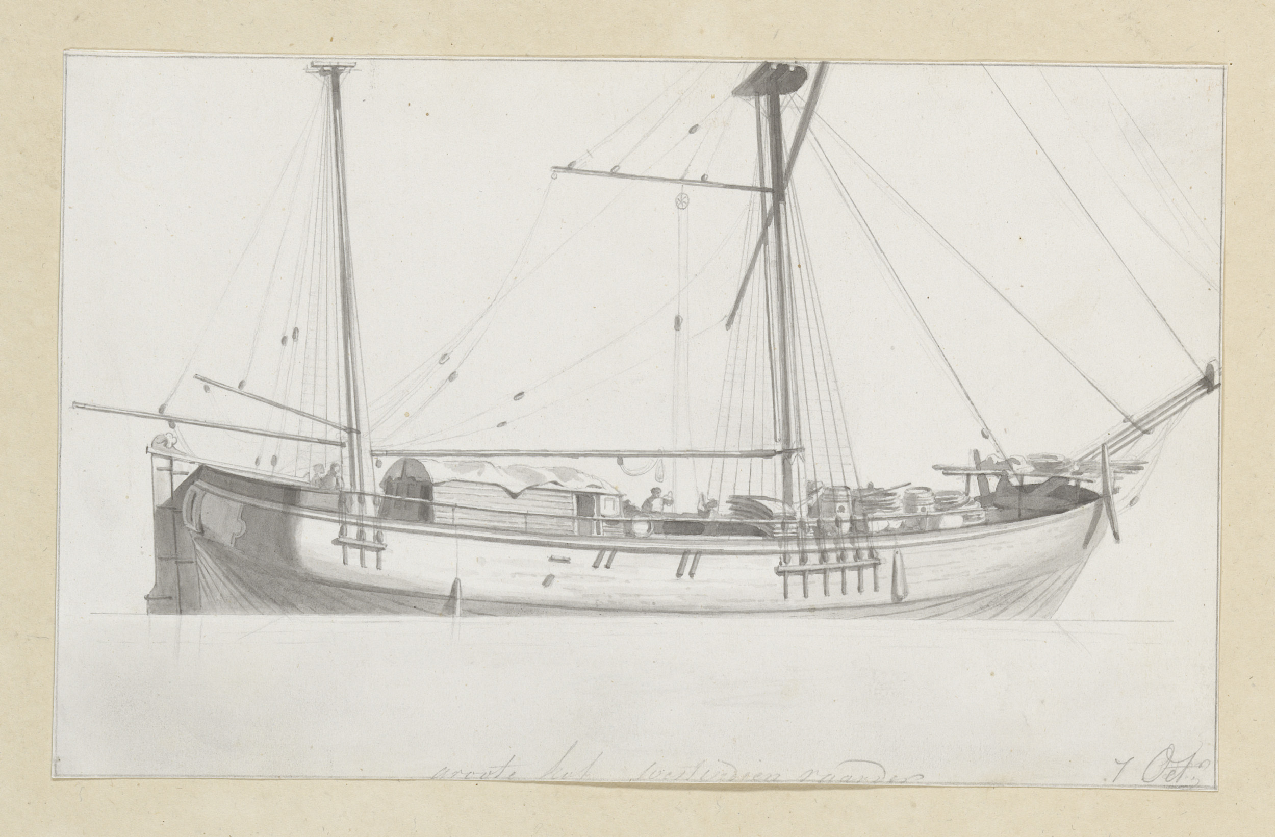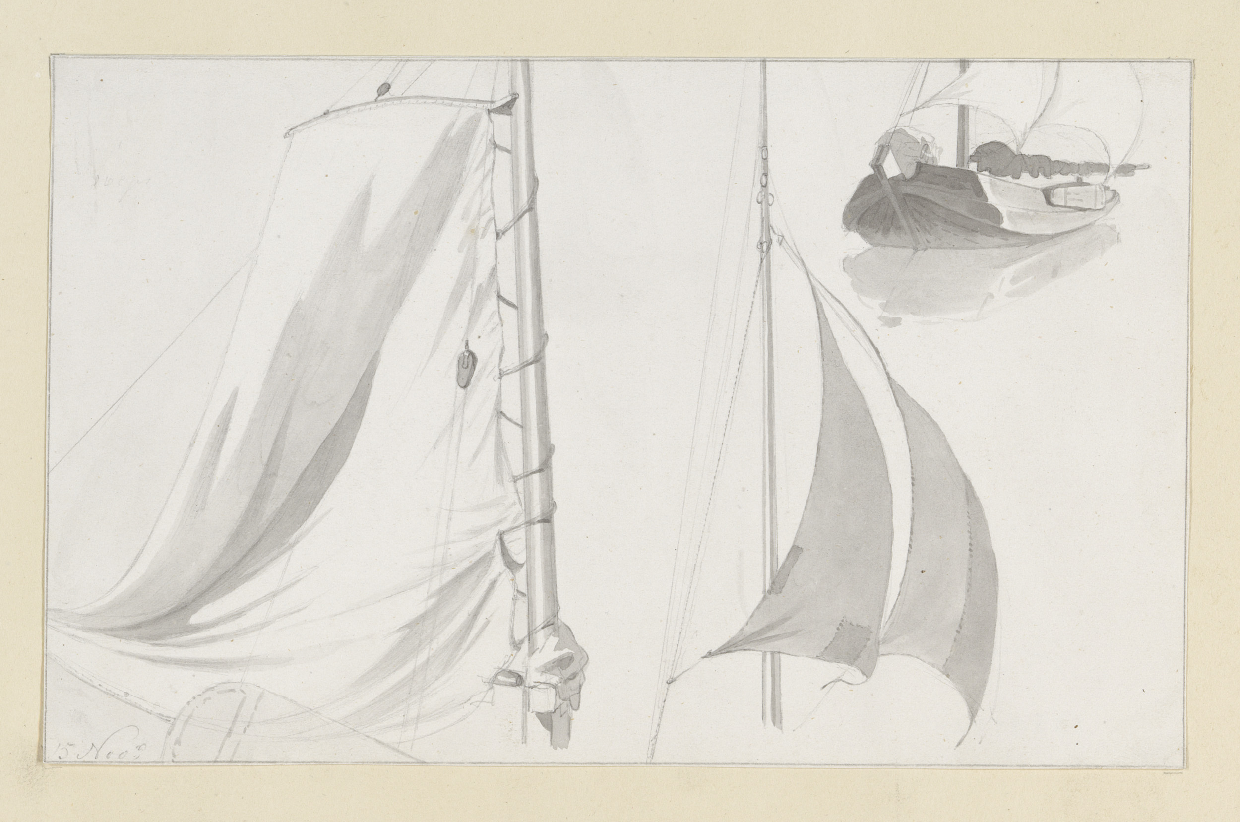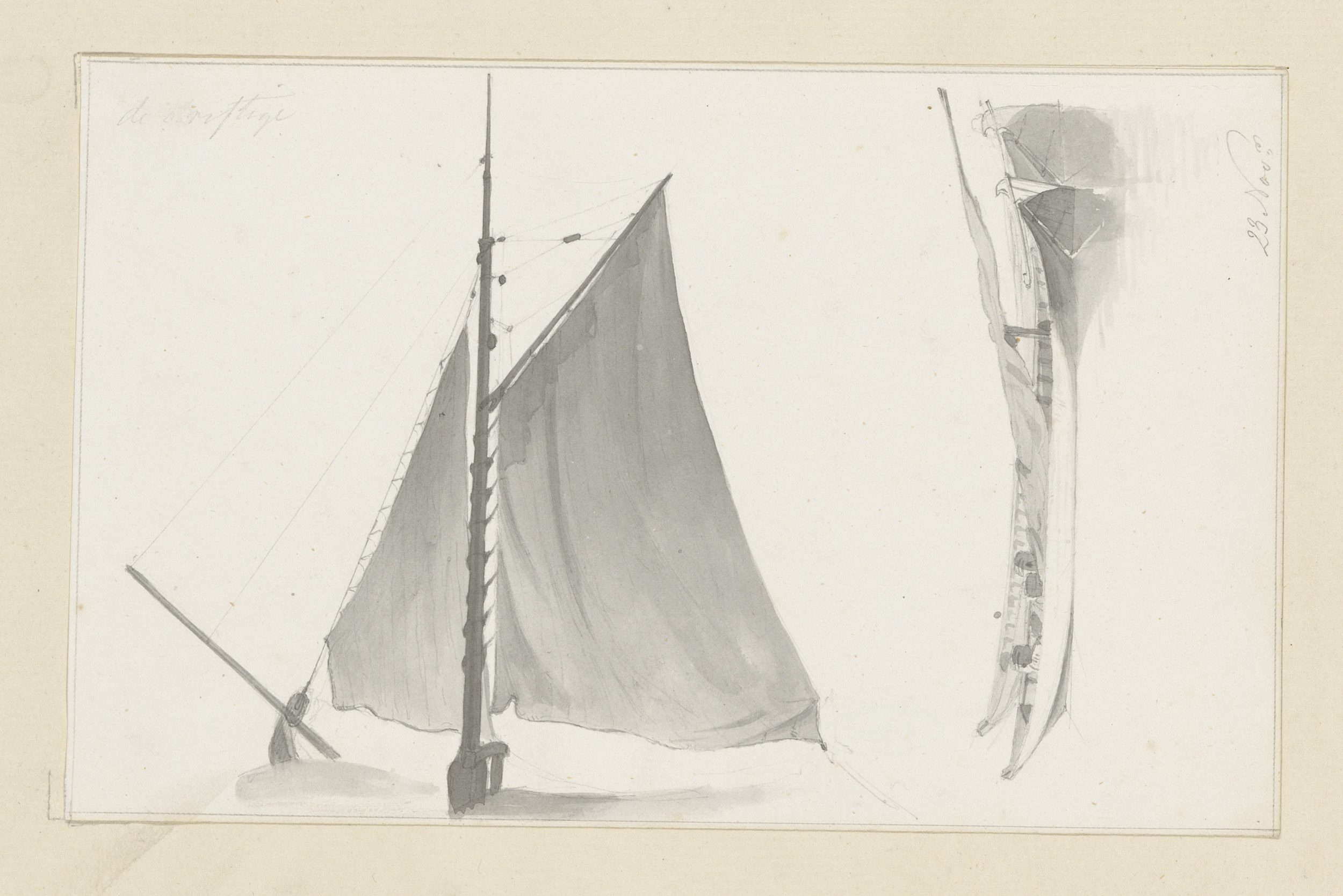 Studieblad met roeren van zeilschepen