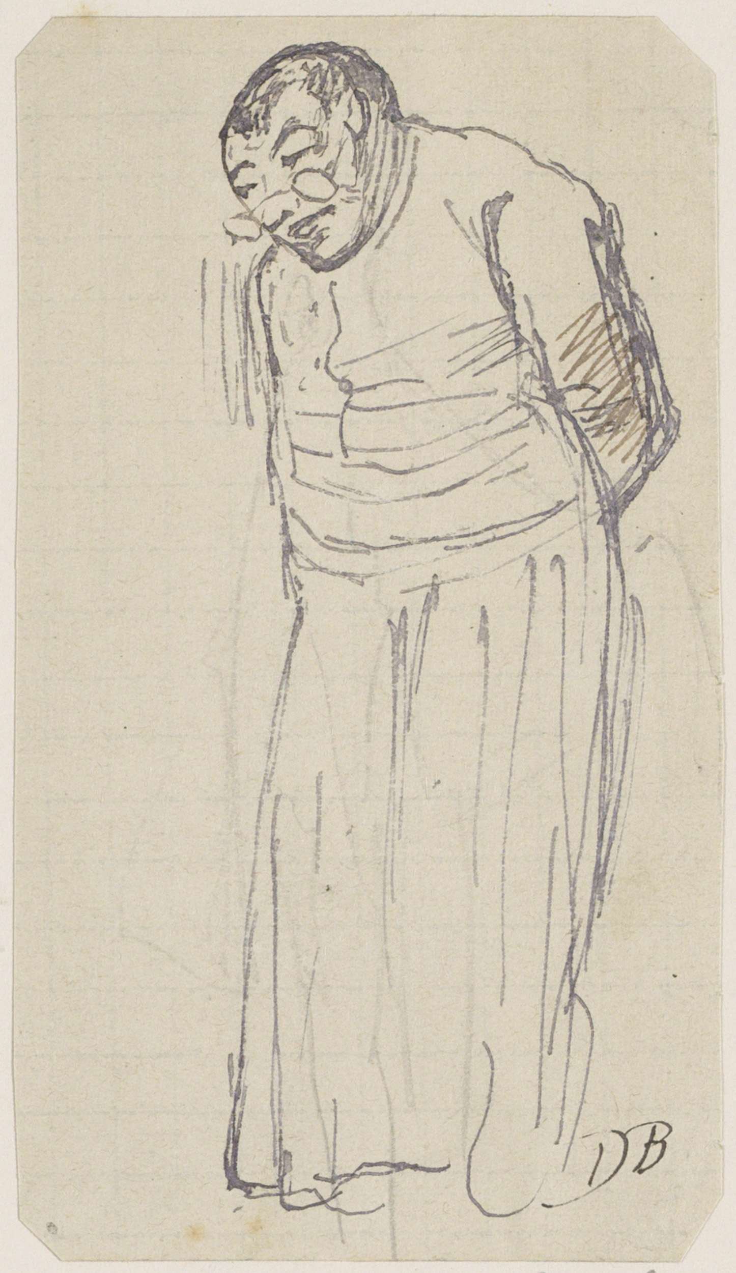 Twee studies van een staande vrouw met een stok