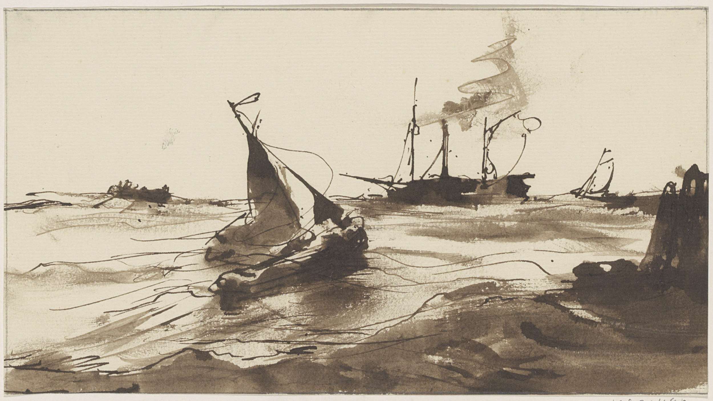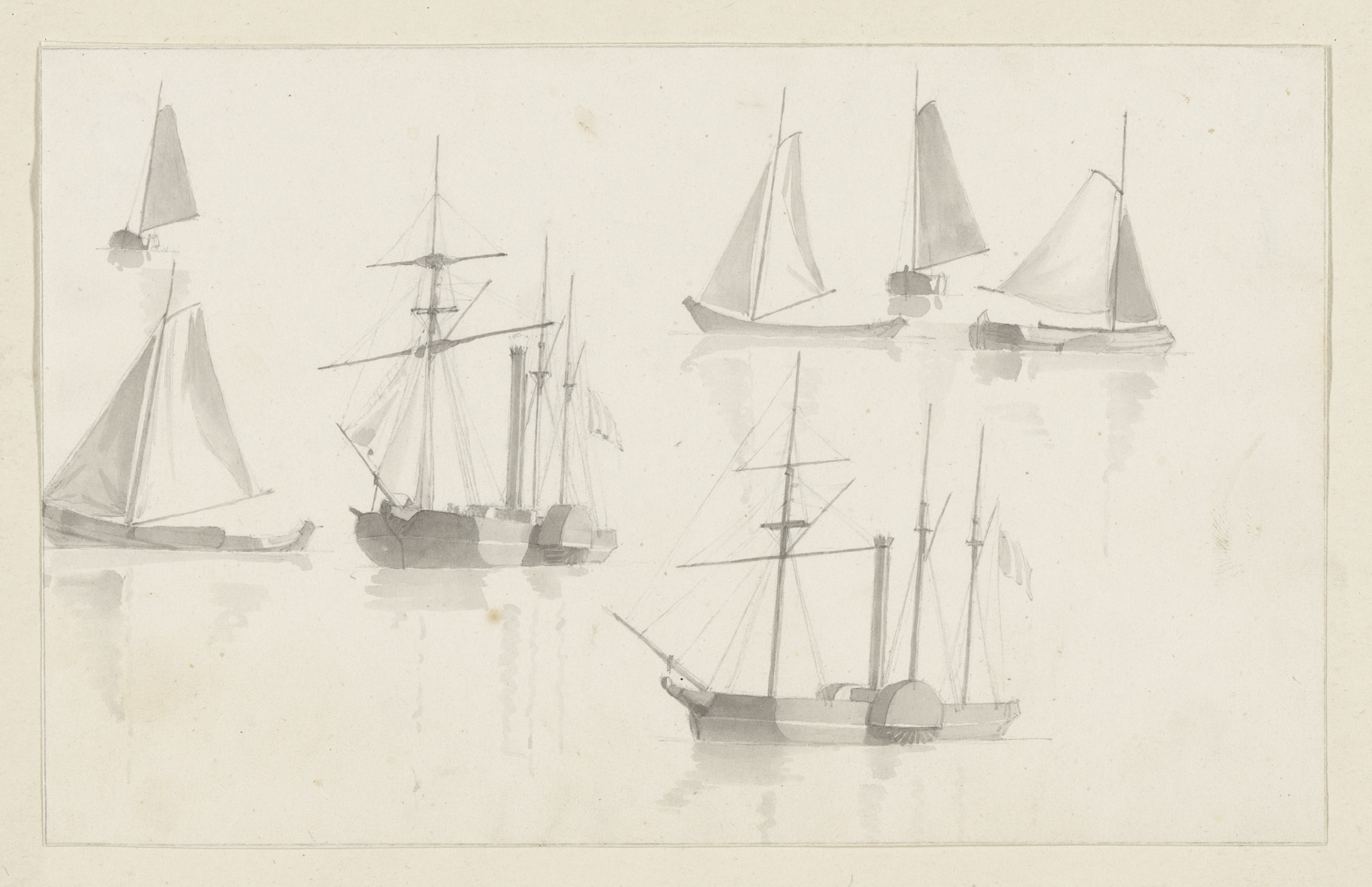 Schetsblad met zeilschepen en raderboten