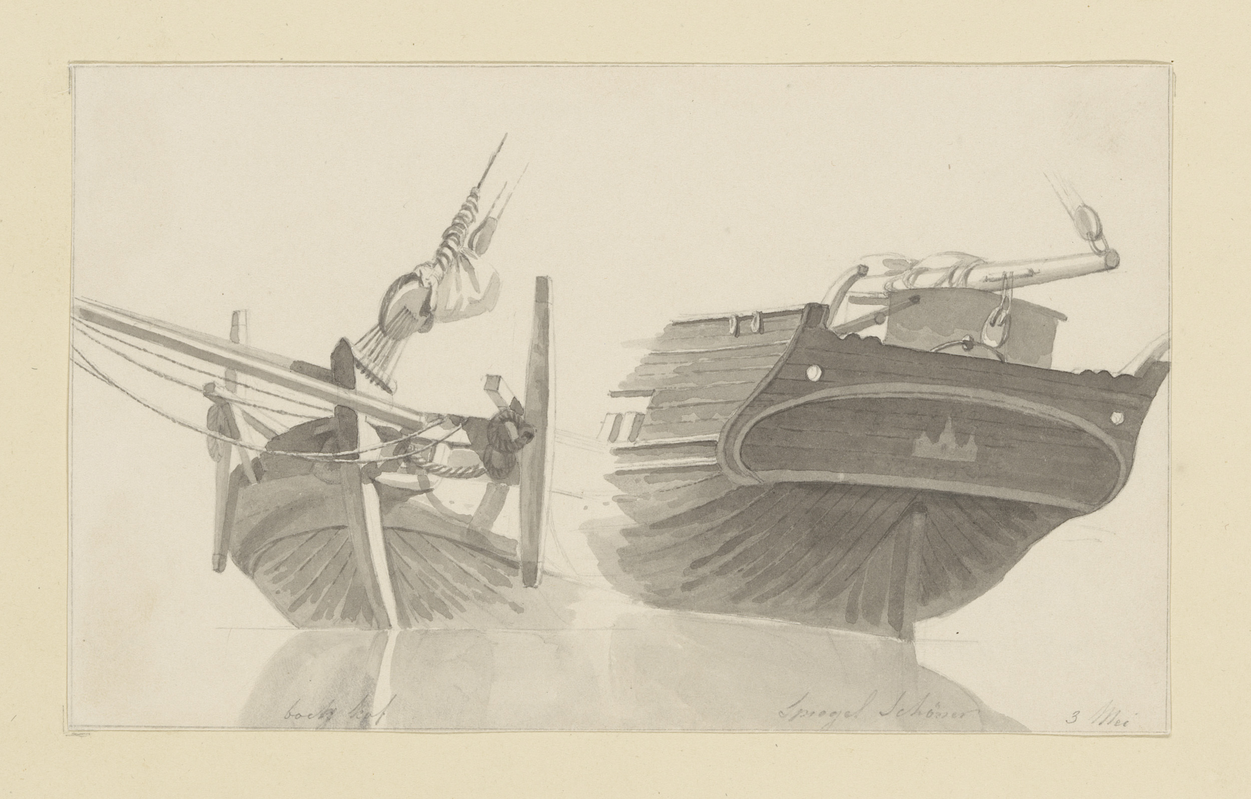 Boeg en spiegel van een schoener