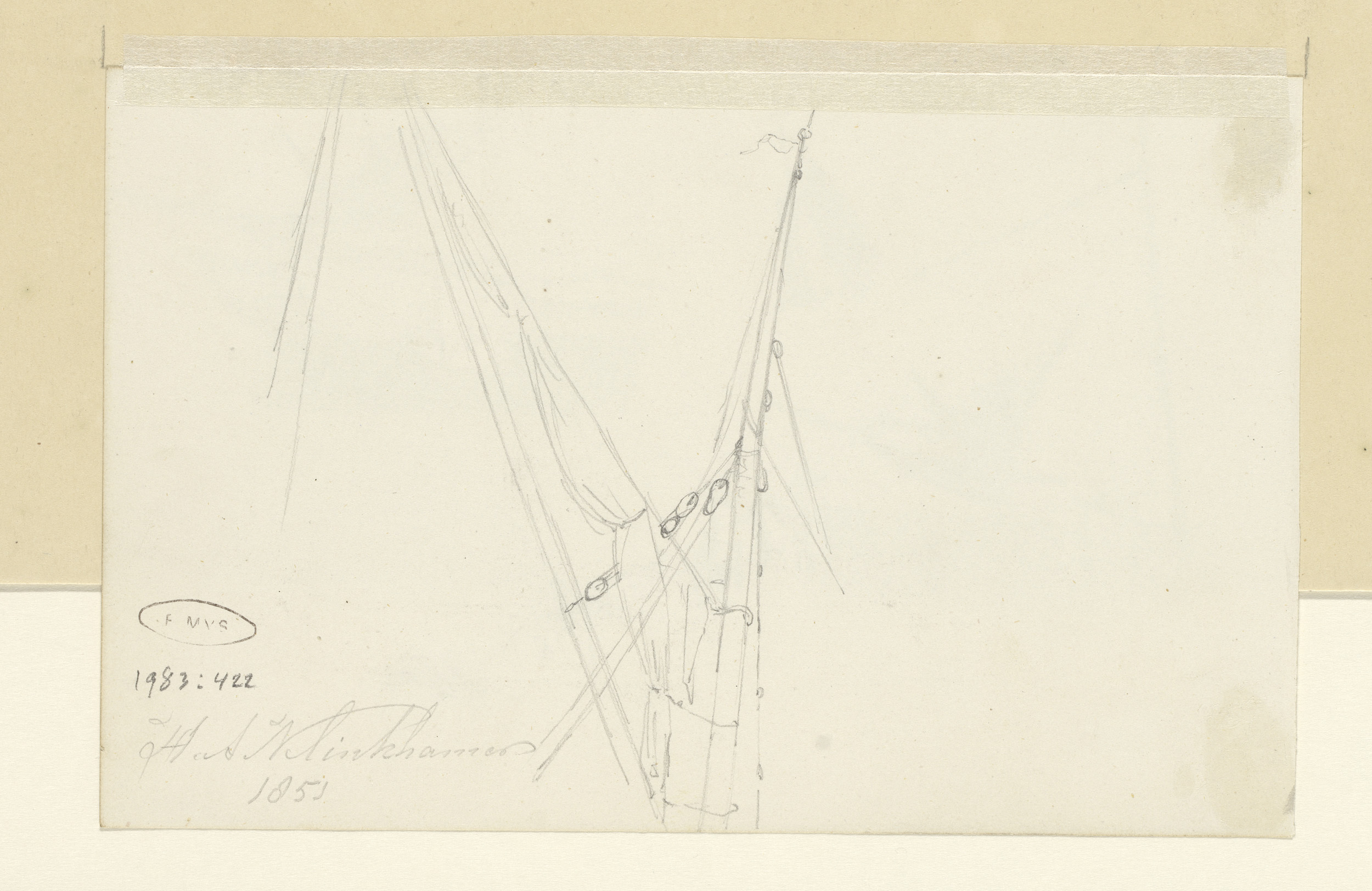 Studieblad met masten en zeilen