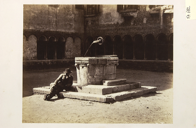 Verona, man bij de waterput op de binnenplaats van d...