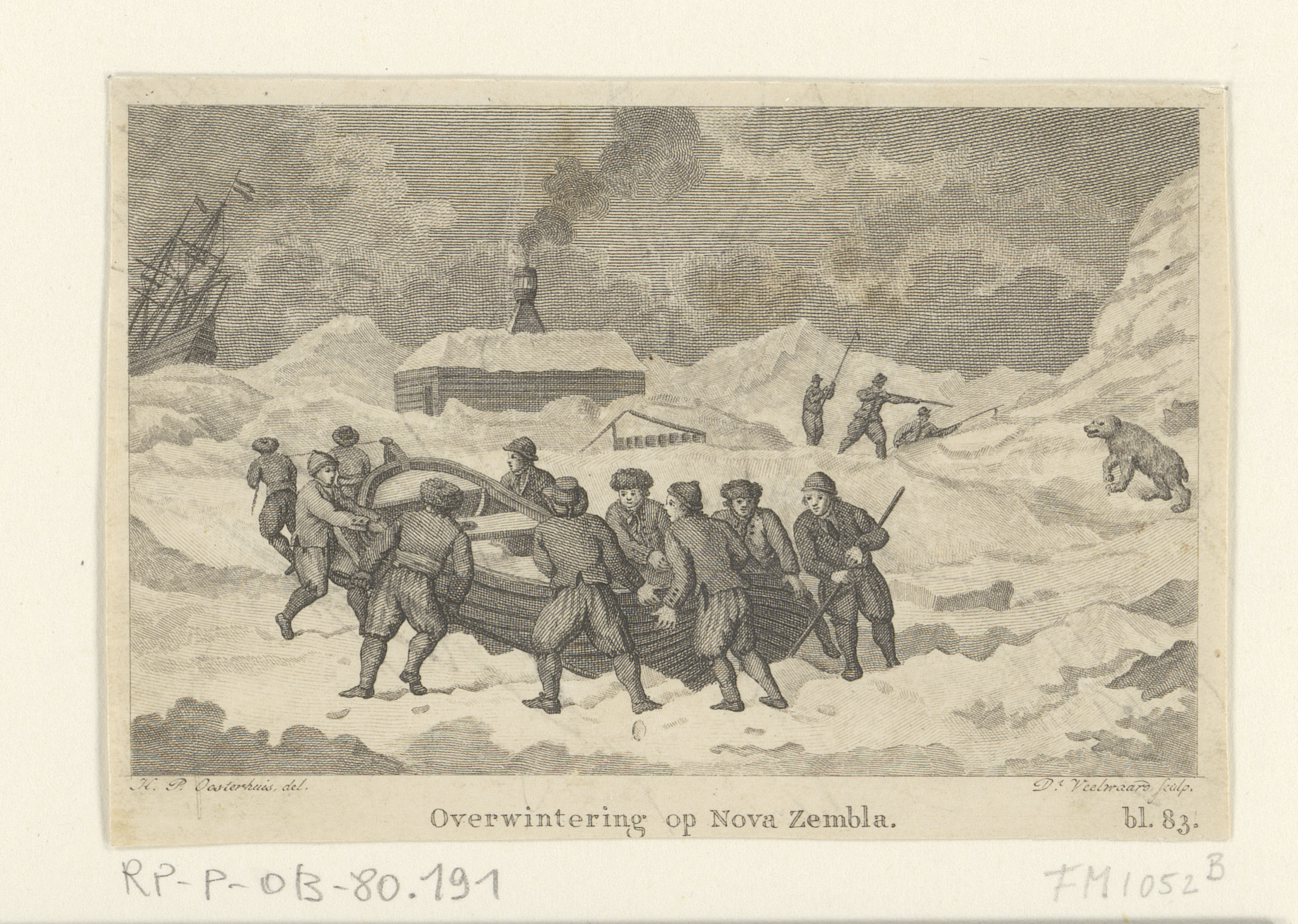 Kaartje van Nova Zembla met scènes uit de tocht, 159...