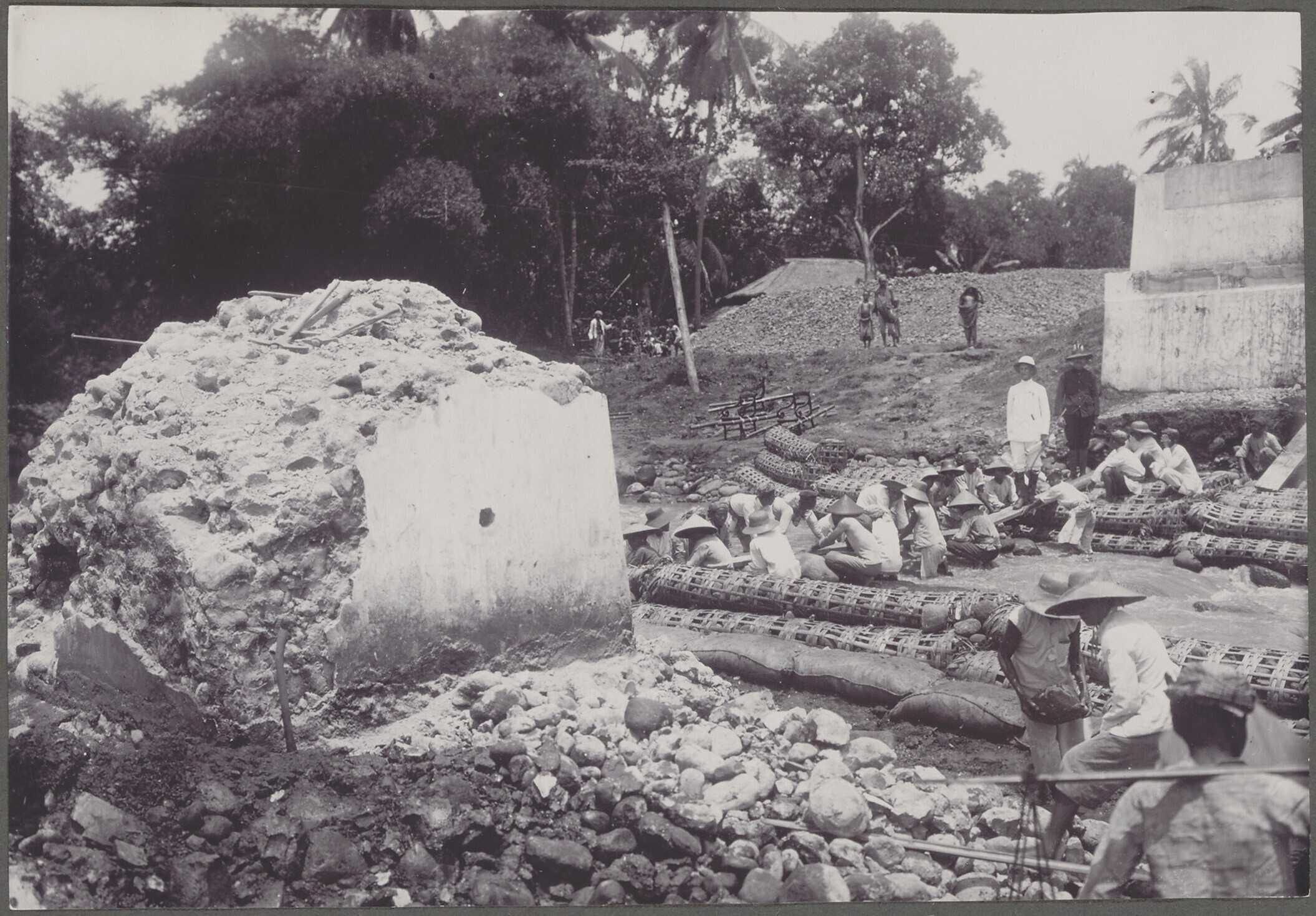 Aanleg van een spoorbrug over de Kali Kantji