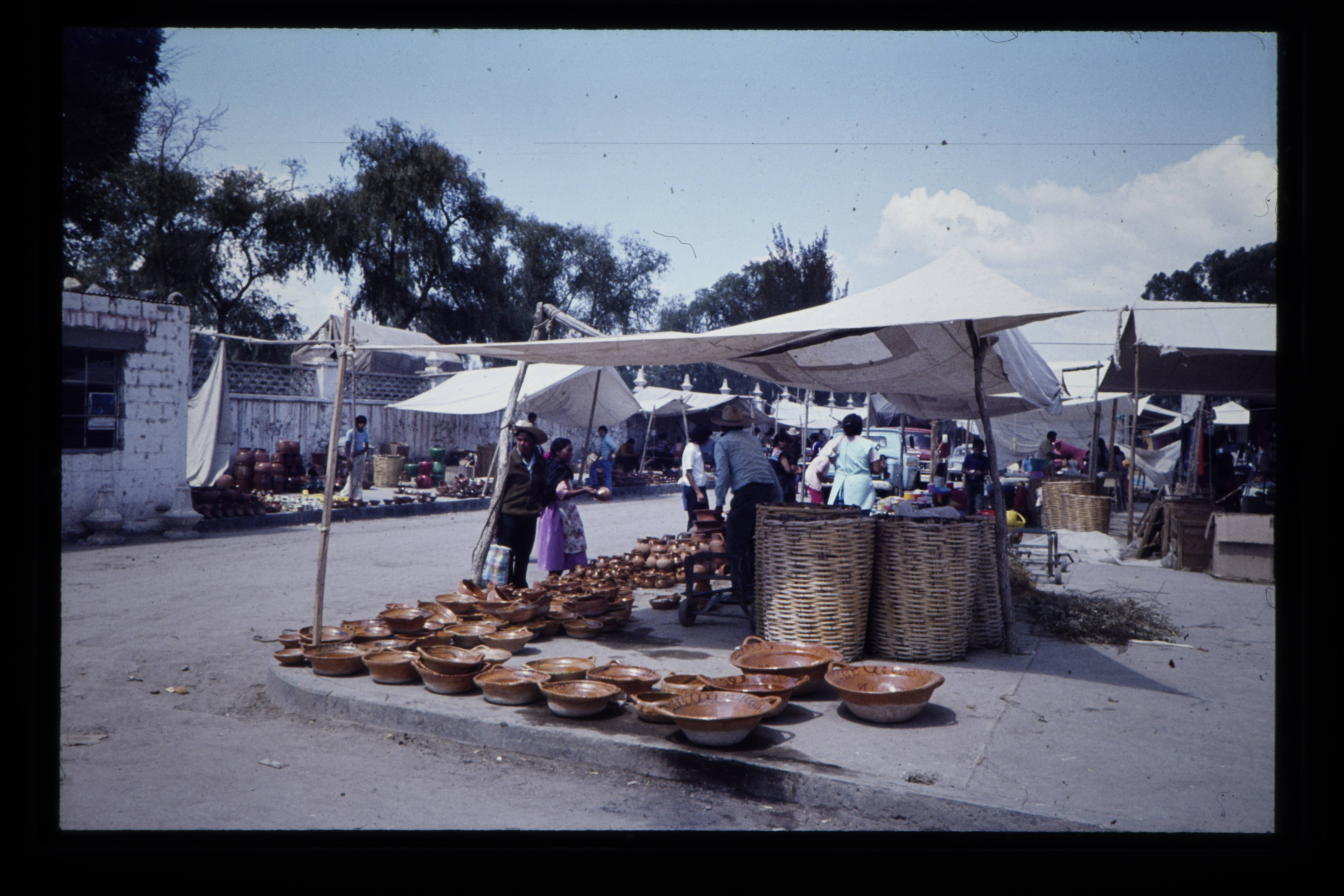 'Verkoop van aardewerk op de markt in Tula.'
