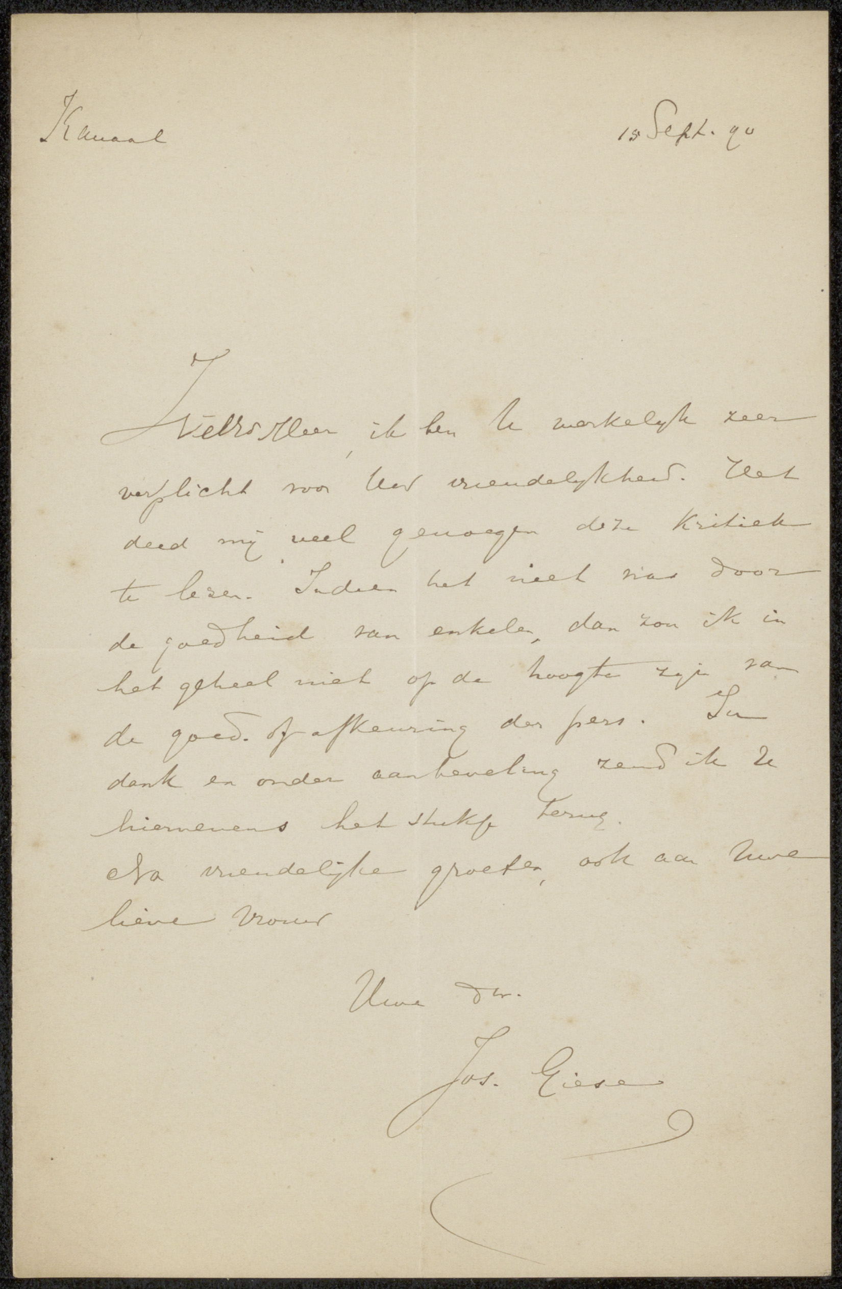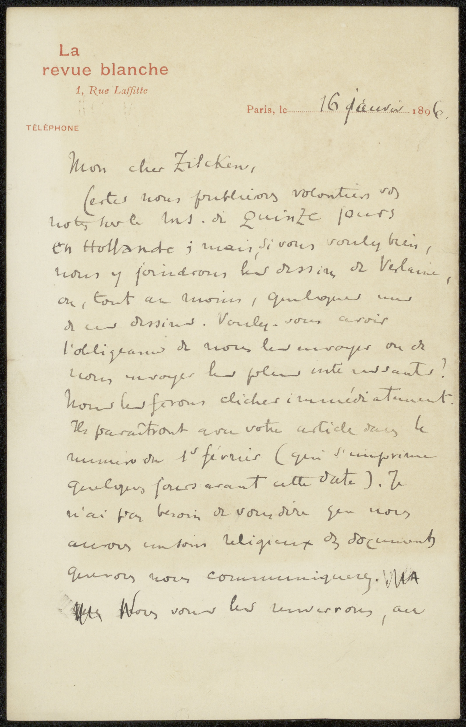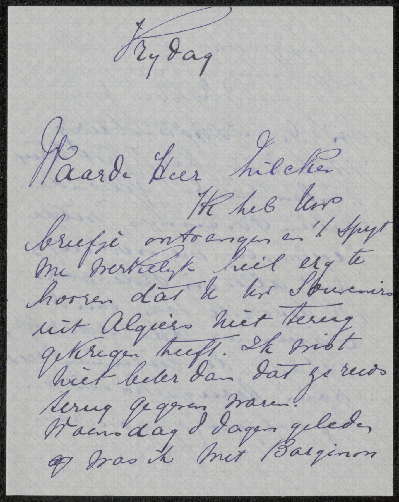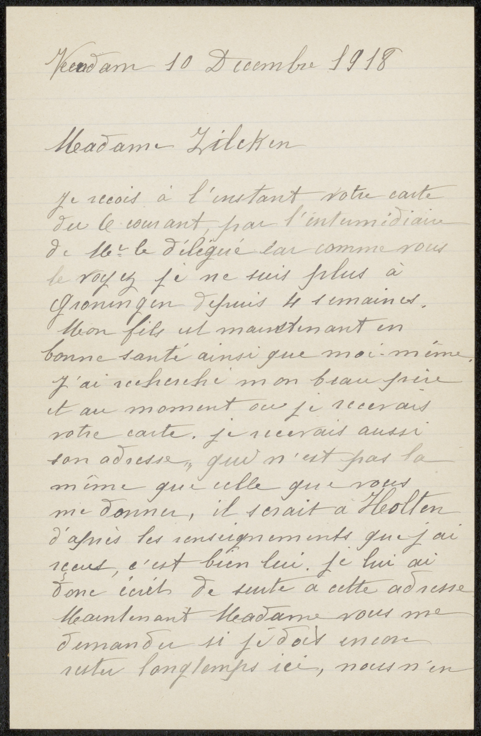 Brief aan Philip Zilcken en Henriette Wilhelmina van...