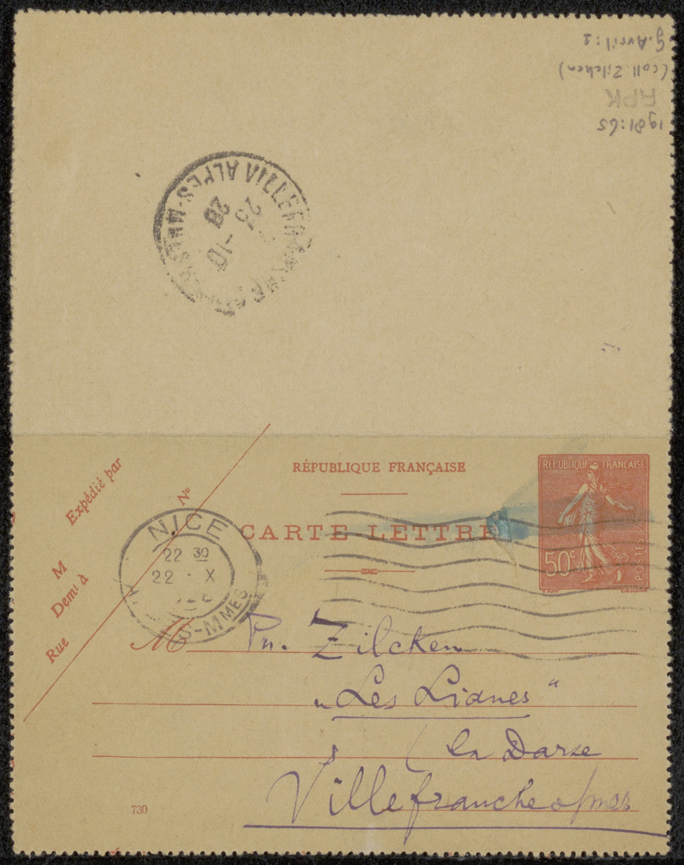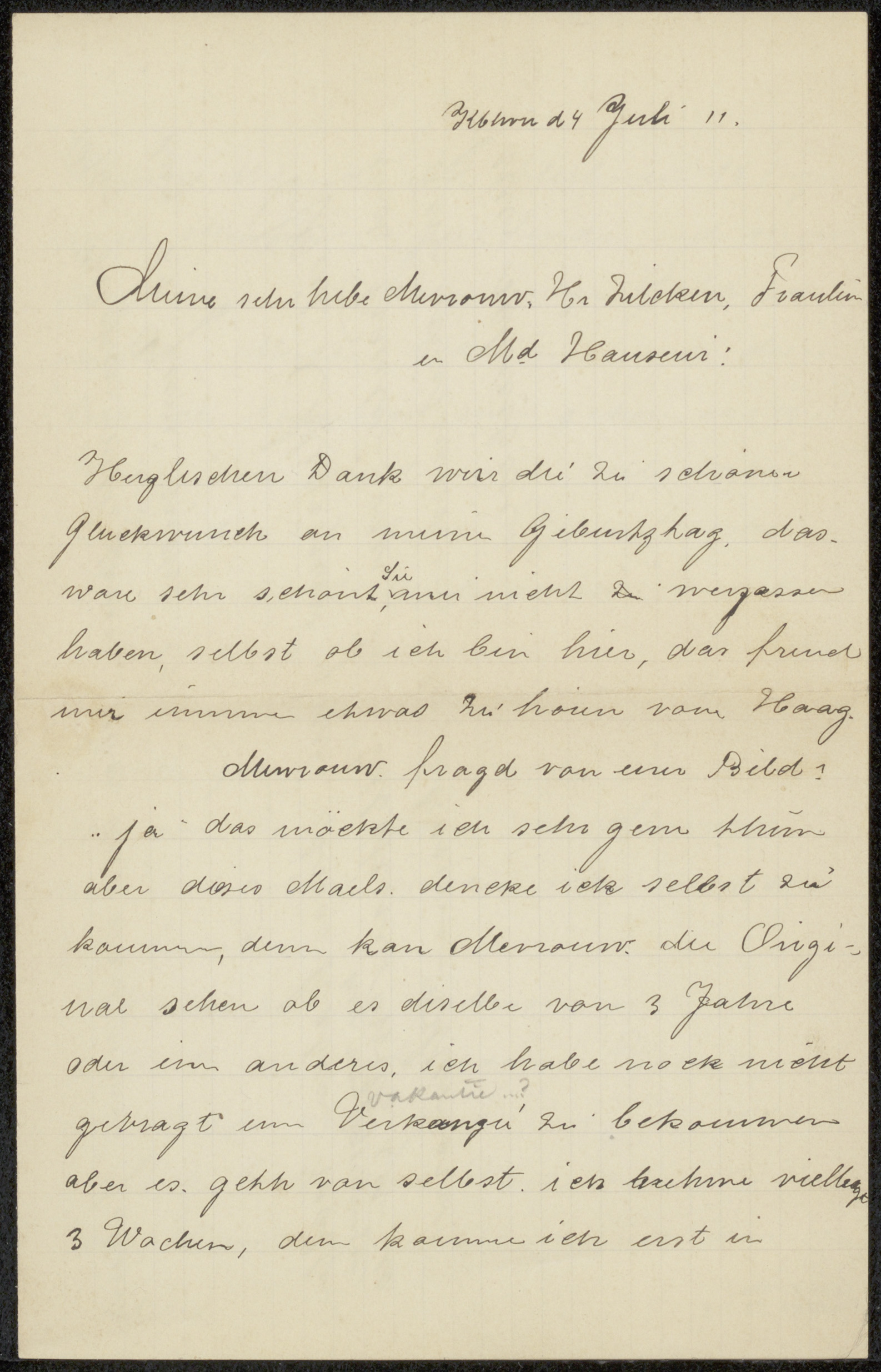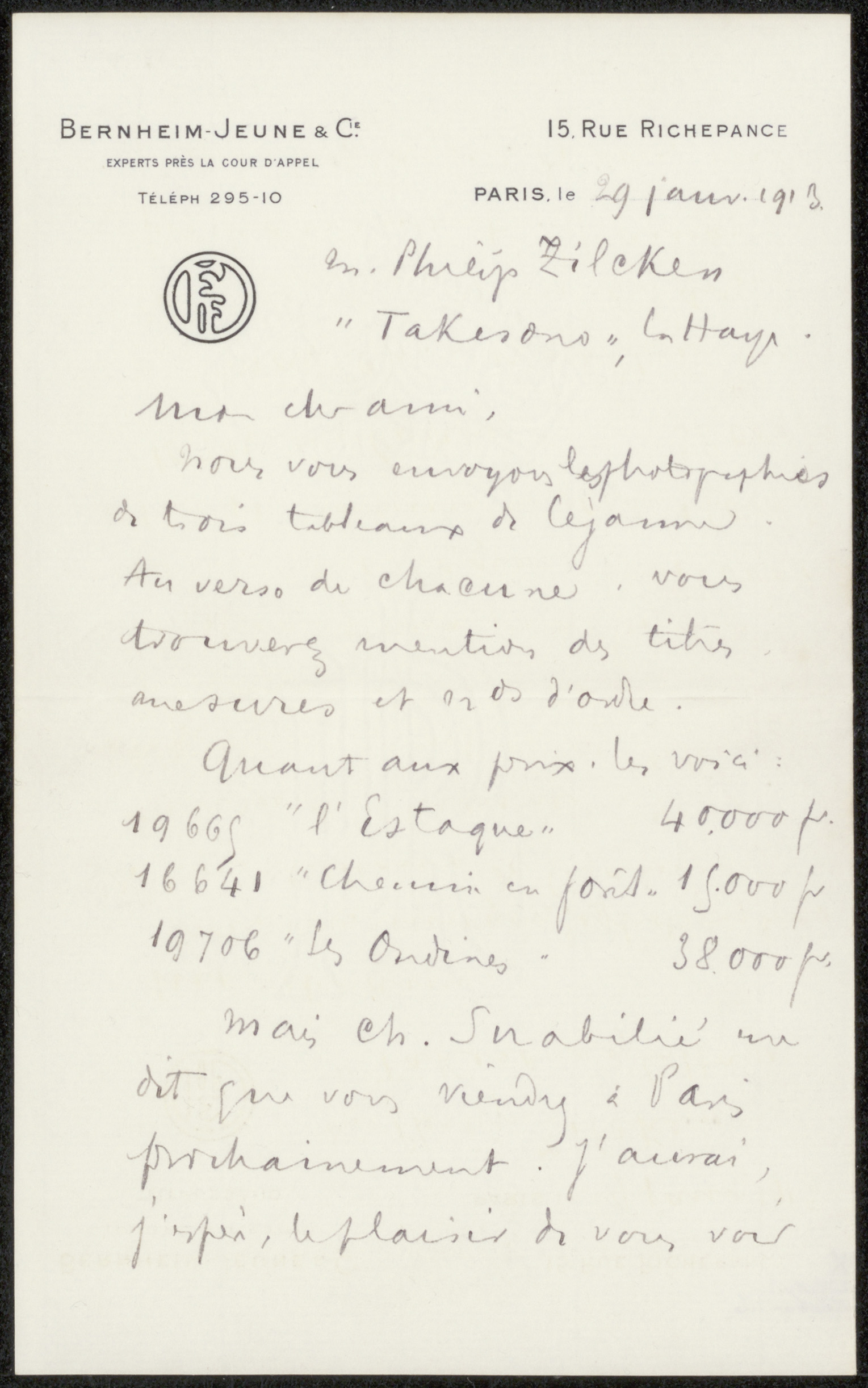 Brief aan Philip Zilcken en Henriette Wilhelmina van...