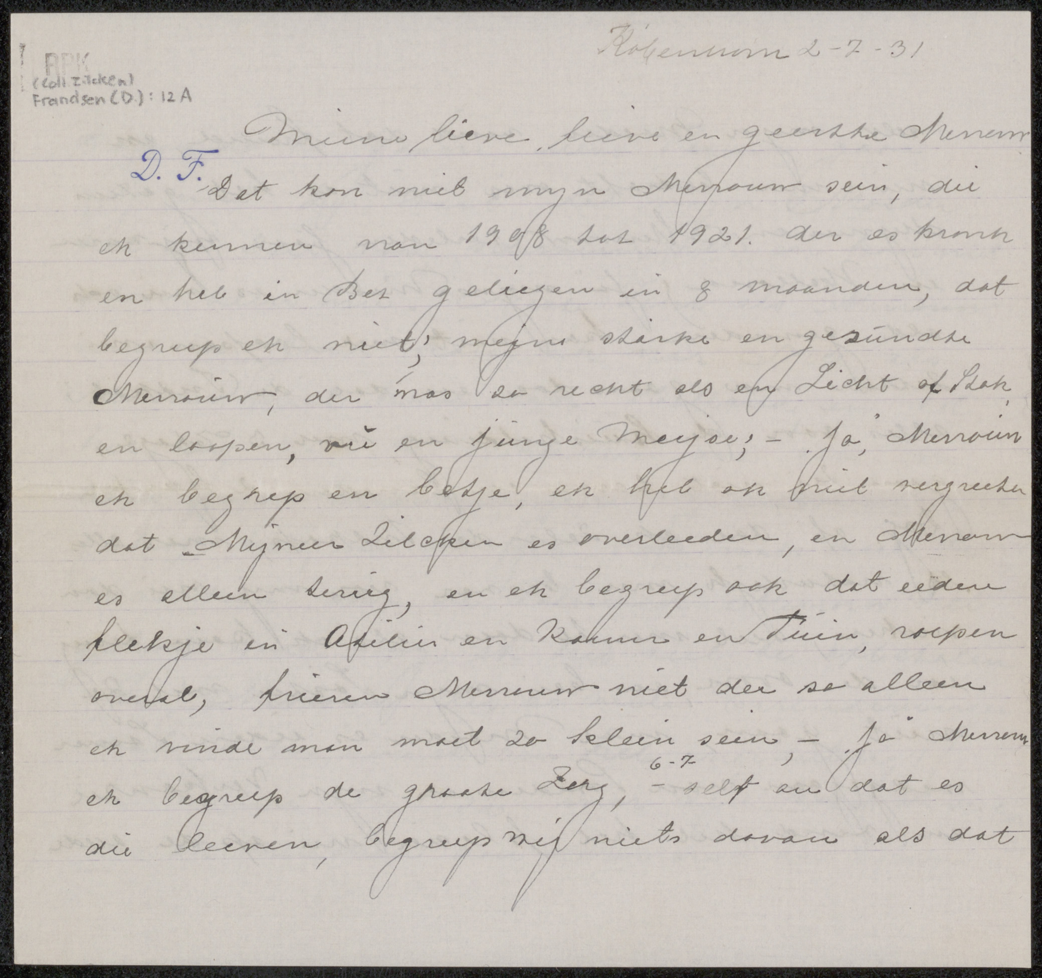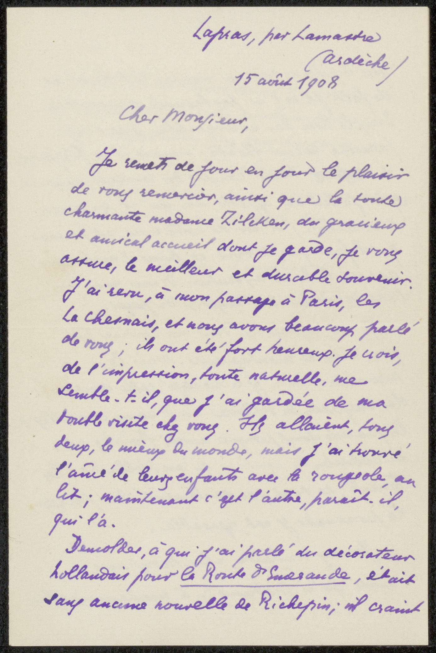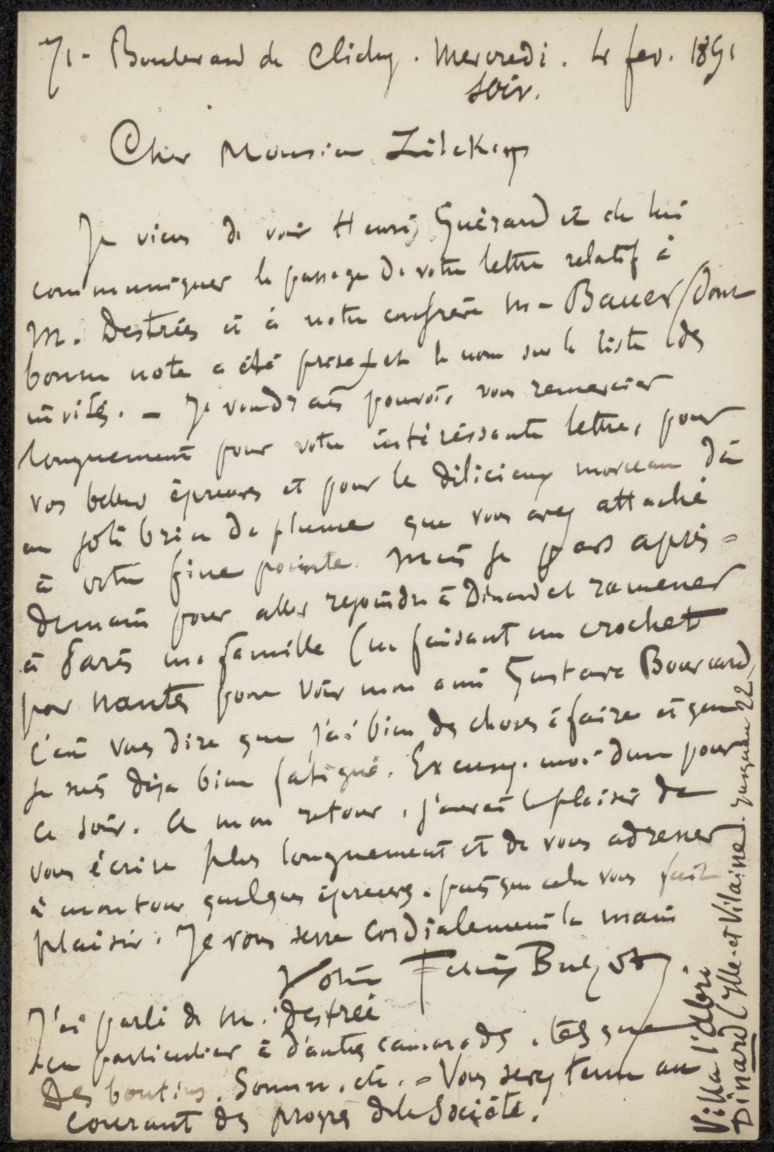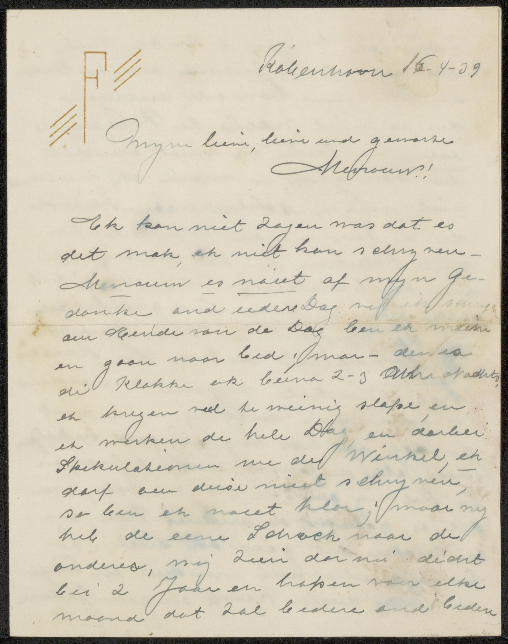 Brief aan Philip Zilcken en Henriette Wilhelmina van...