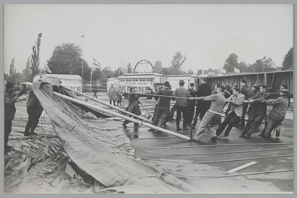 Opbouw Circus Krone in Hilversum. 20 juni 1963