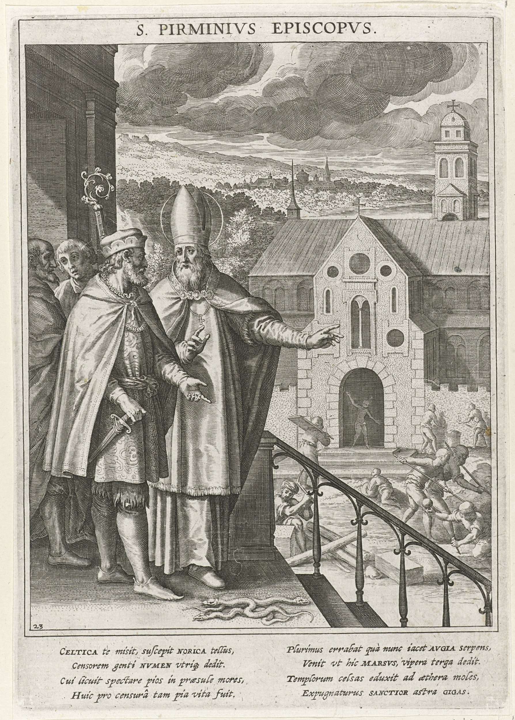 Heilige Pirminius toont Karel Martel de bouw van de ...