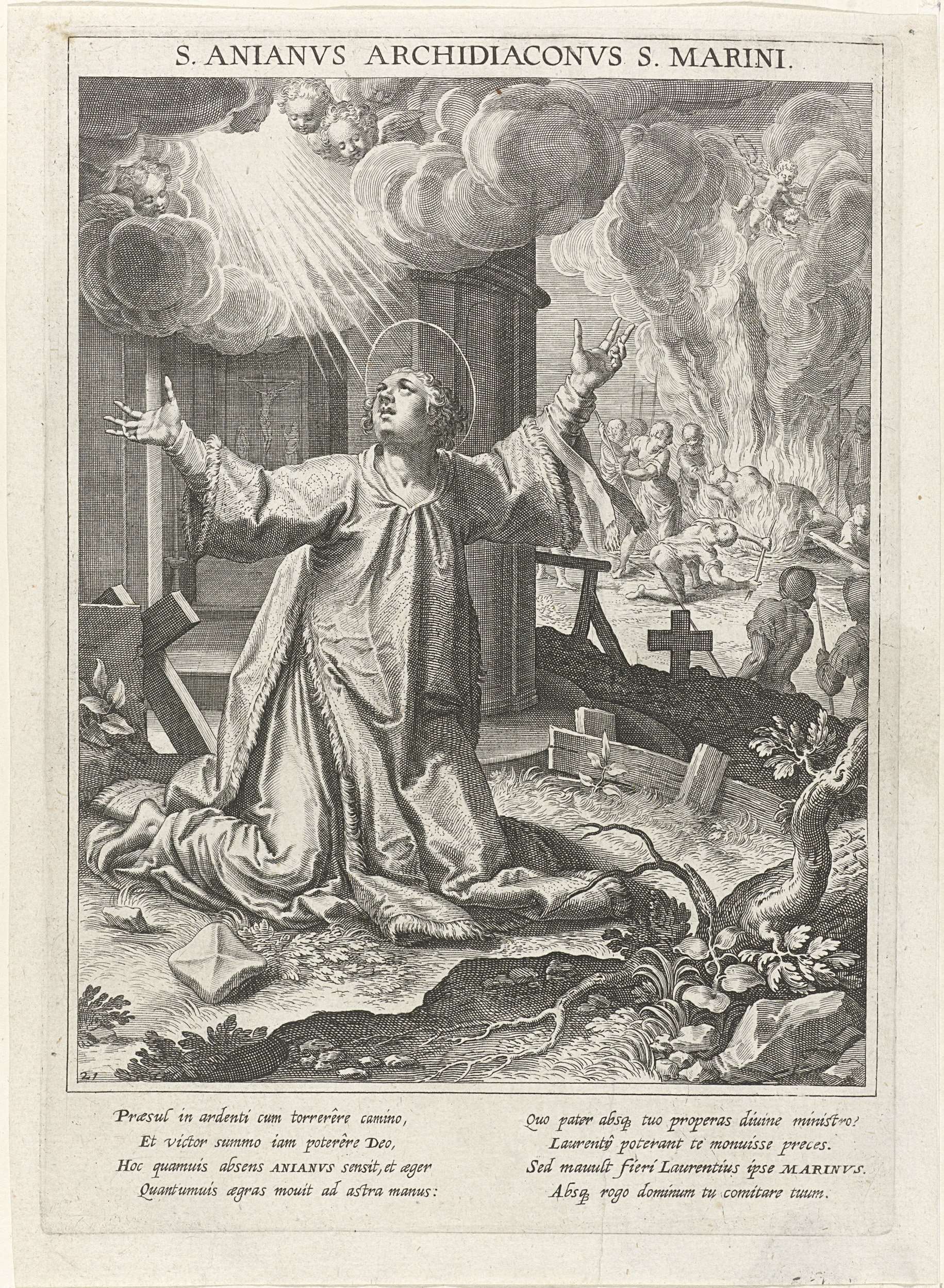 Marteldood van de heilige Marianus op een brandstapel
