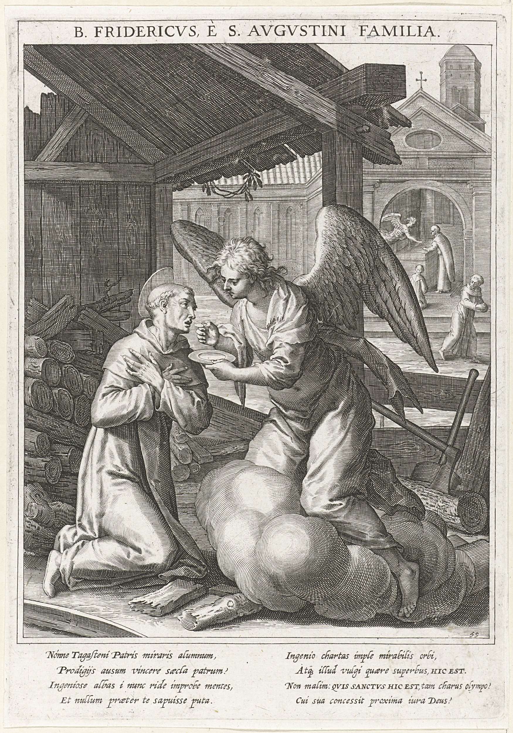 Engel rijkt de communie uit aan Fredericus van Regen...
