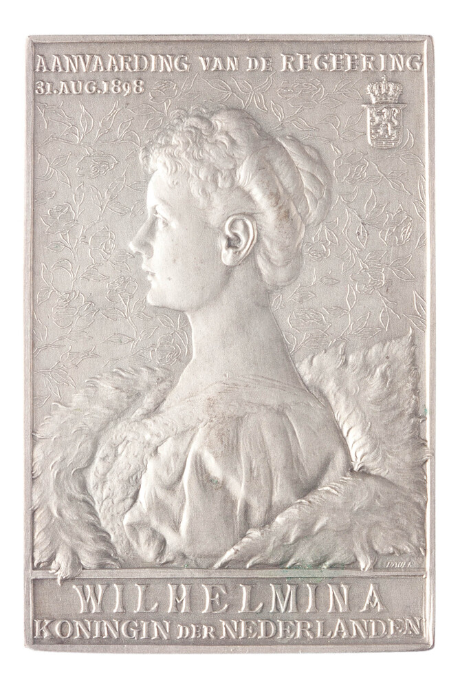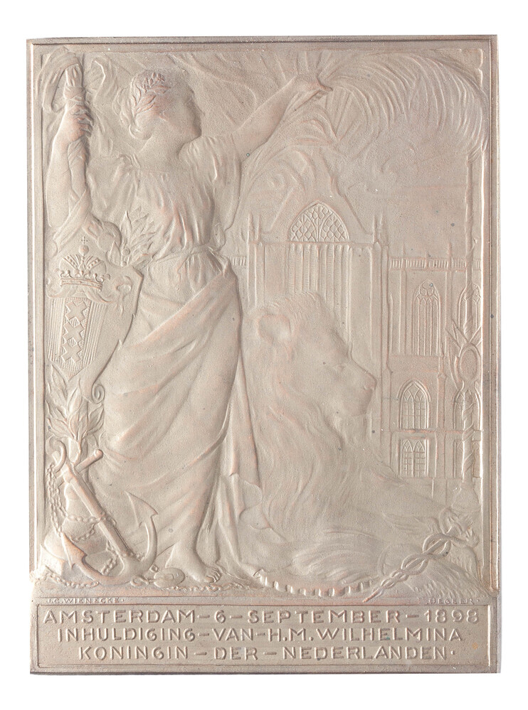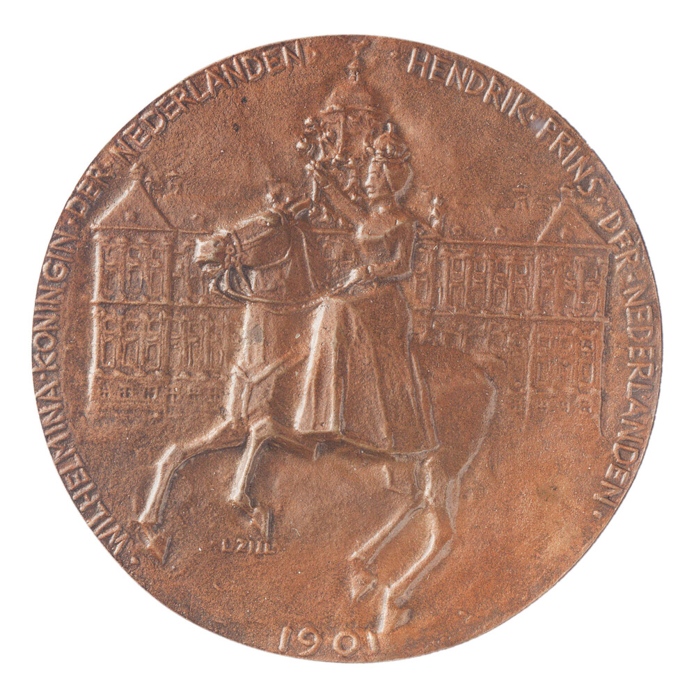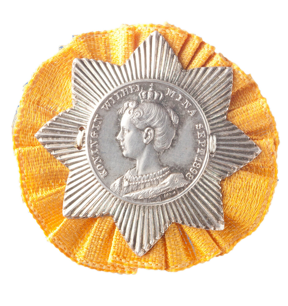 Draagteken op de inhuldiging van koningin Wilhelmina...