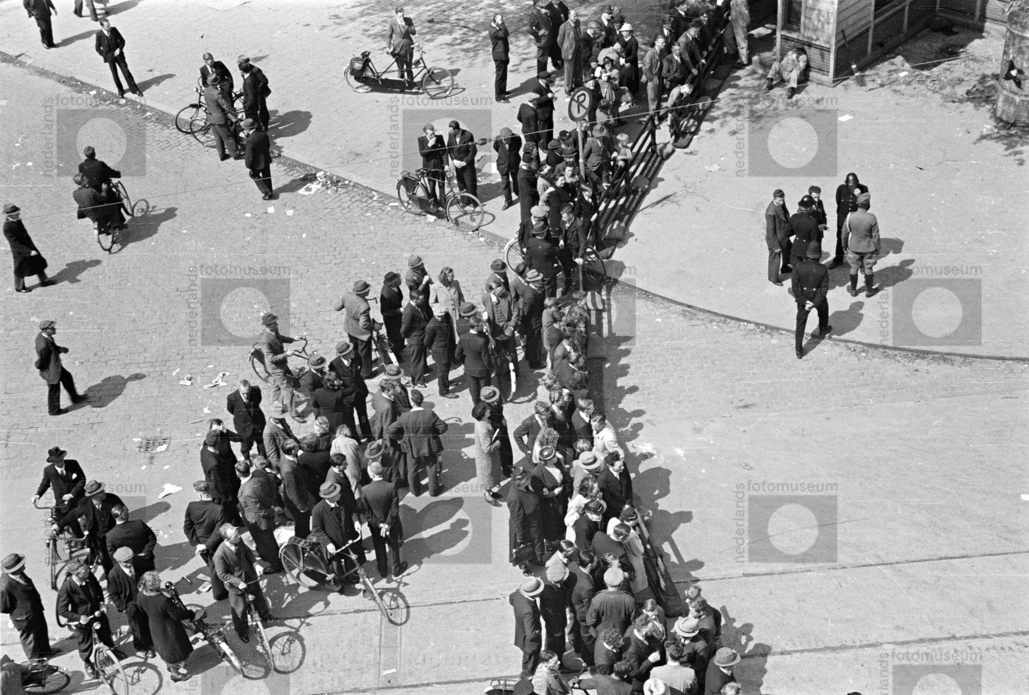 Verkeersdrukte met enkele Duitse militairen voor sta...