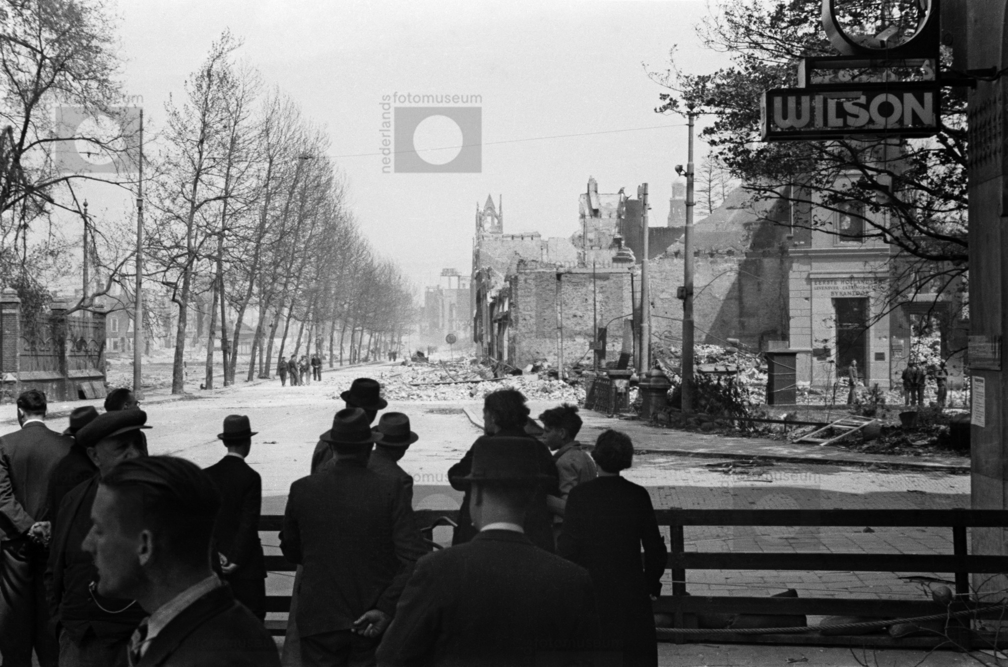 Het verwoeste centrum, vermoedelijk Kruiskade, na he...