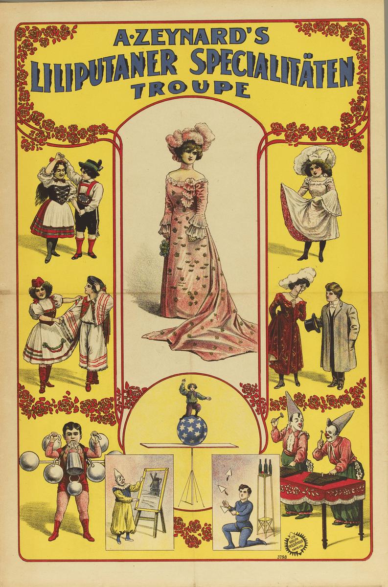 Tekst: "A. Zeynard's Liliputaner Specialitäten Troup...