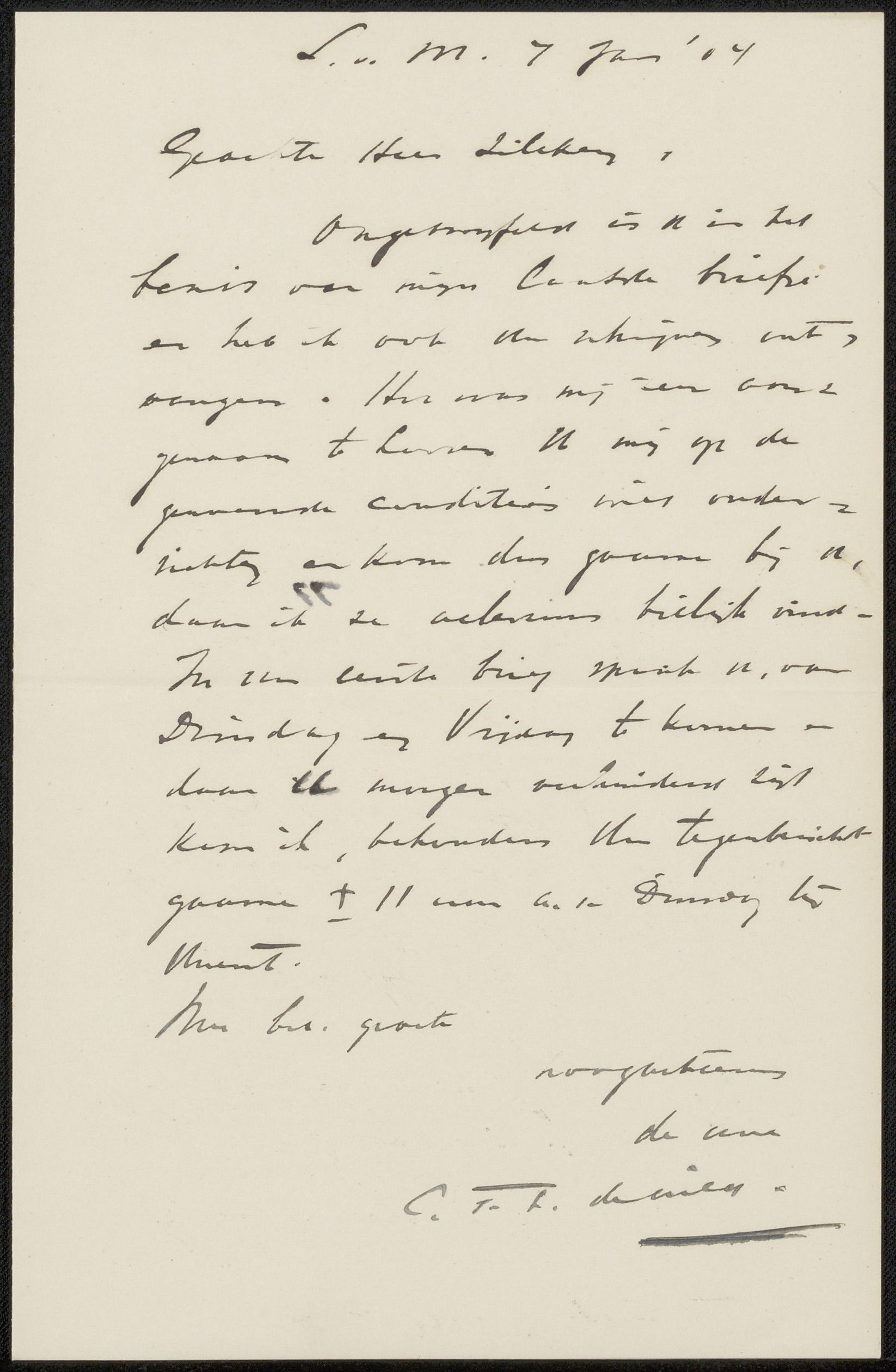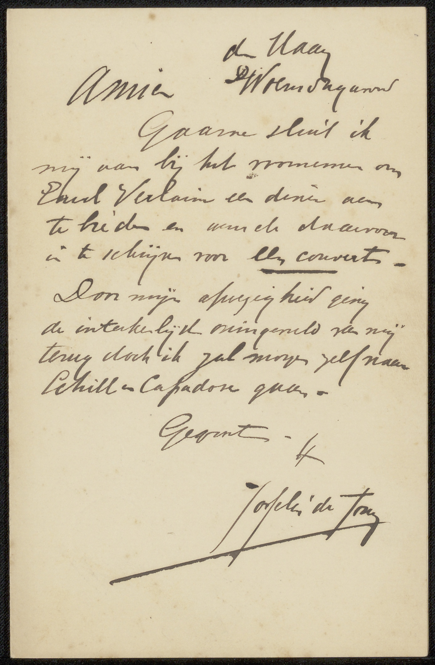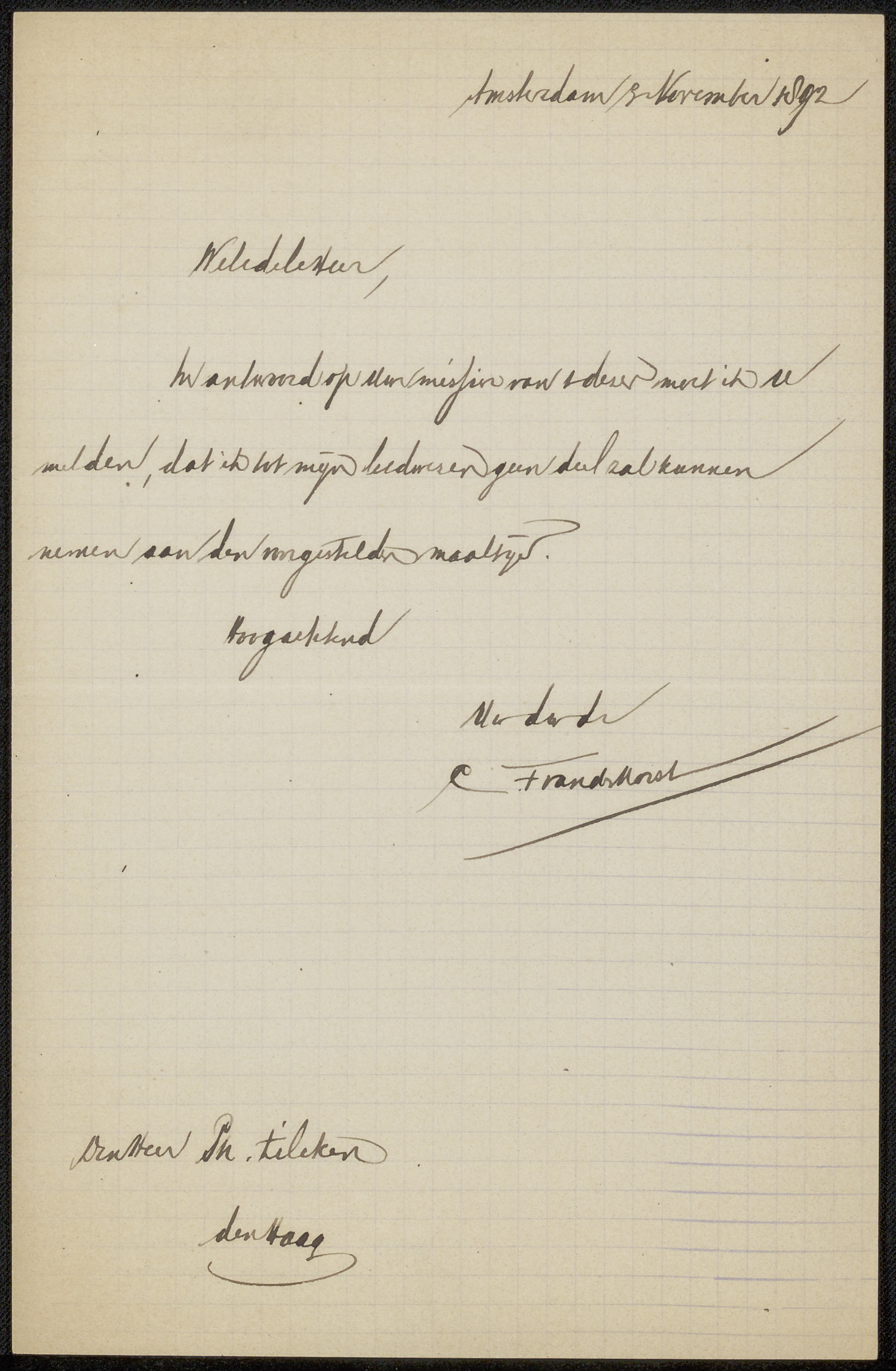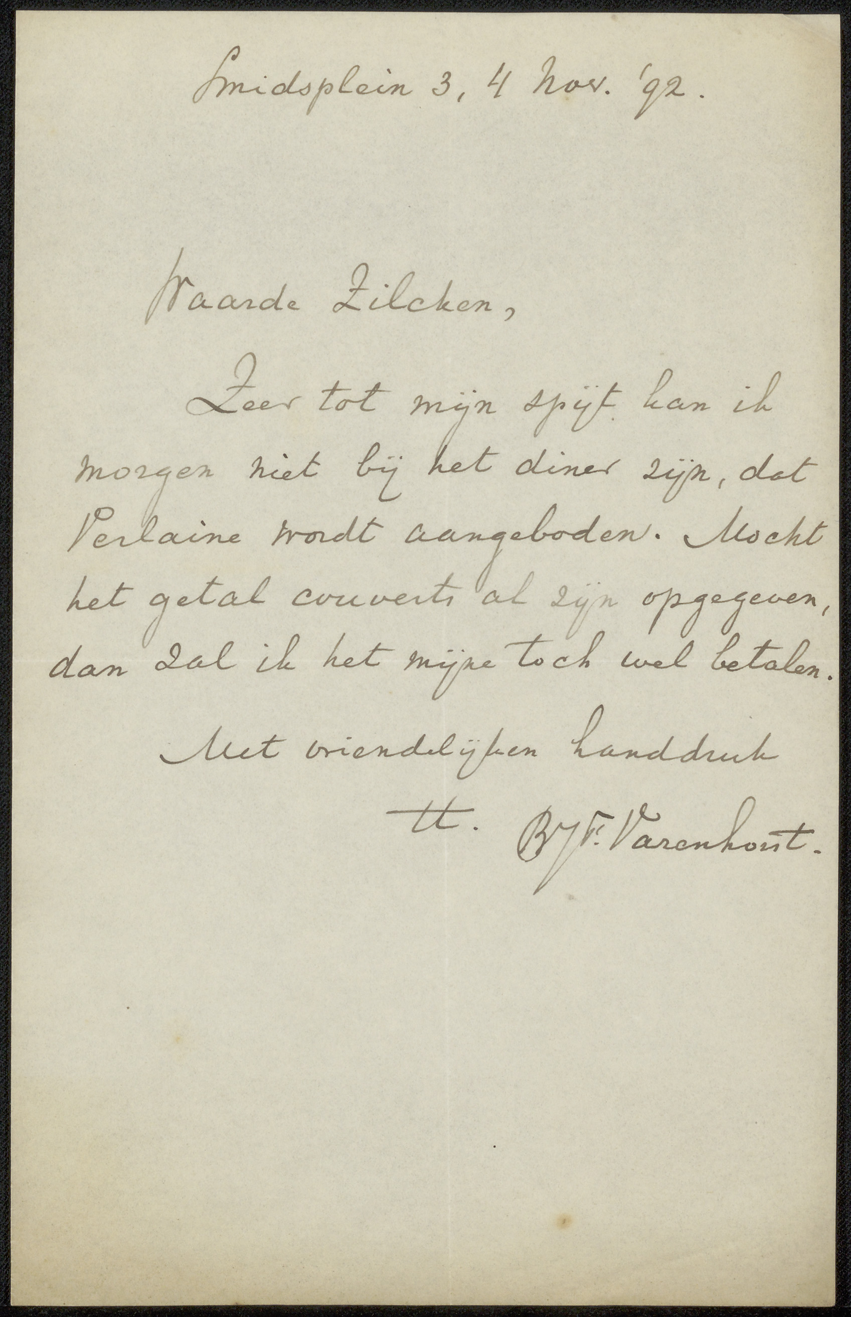 Brief aan Philip Zilcken en Henriette Wilhelmina van...